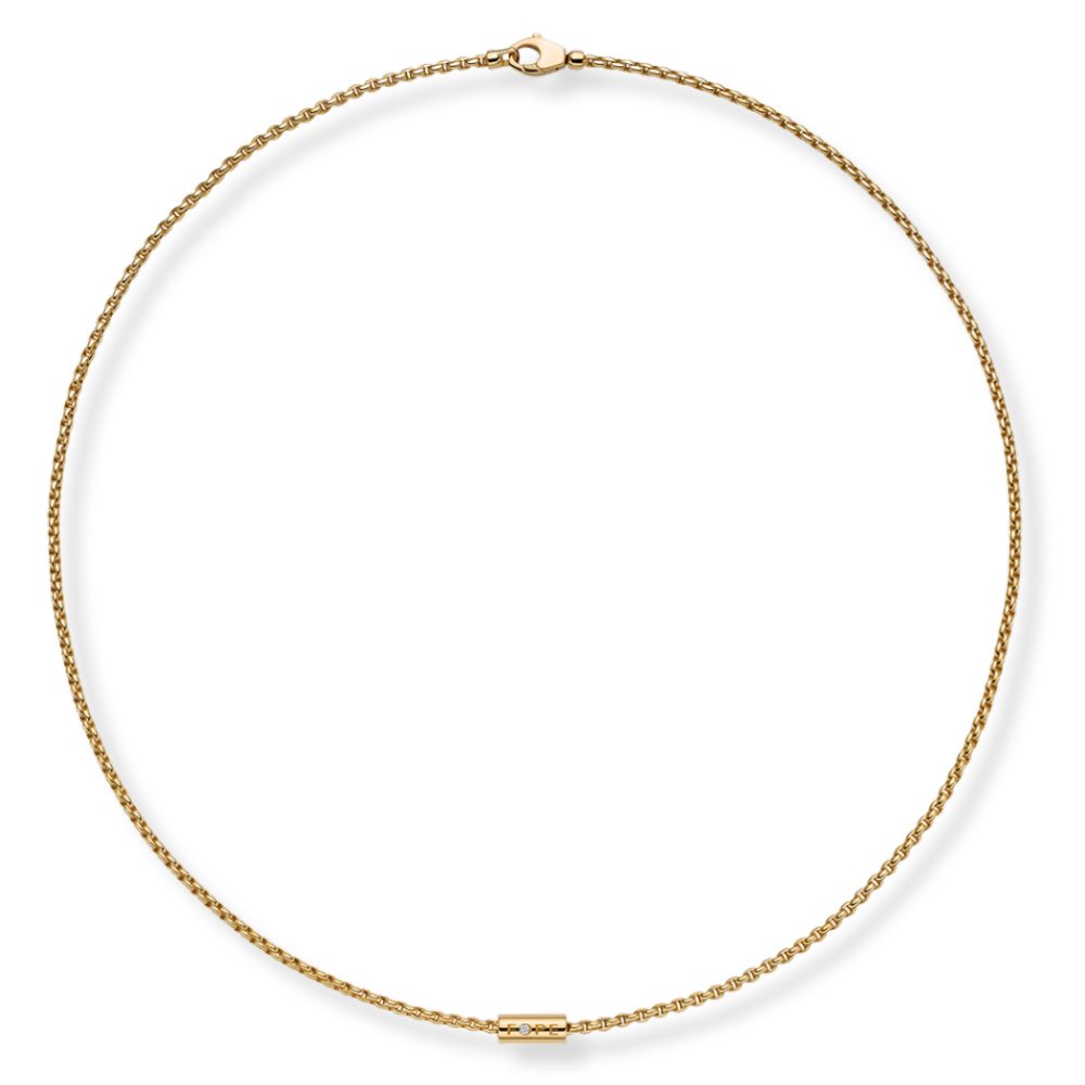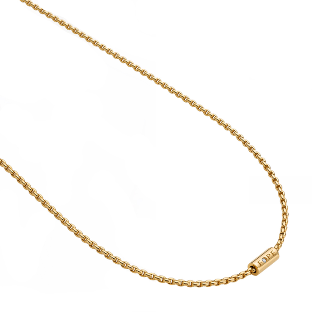 Charmantes Collier aus 18 Karat Gelbgold mit einem Diamanten. Ein Begleiter für jeden Tag und so flexibel, wie es Ihr Alltag erfordert.
