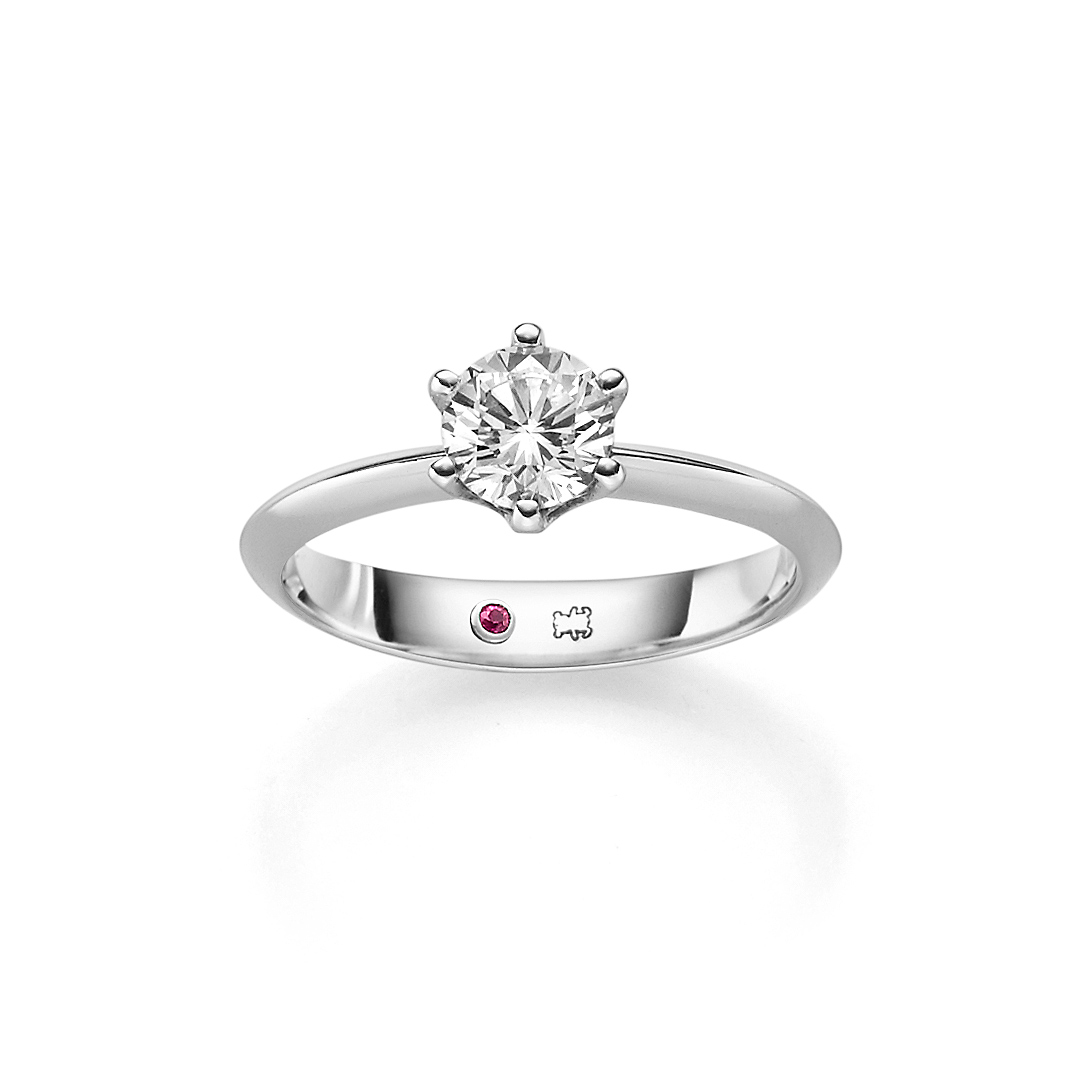 Solitärring mit einem weißen Diamant und der charakteristischen Bärchen-Gravur. Gefertigt aus Platin 950/-. Mit der Kollektion Bärenherz helfen Sie Kindern und Familien in Not.