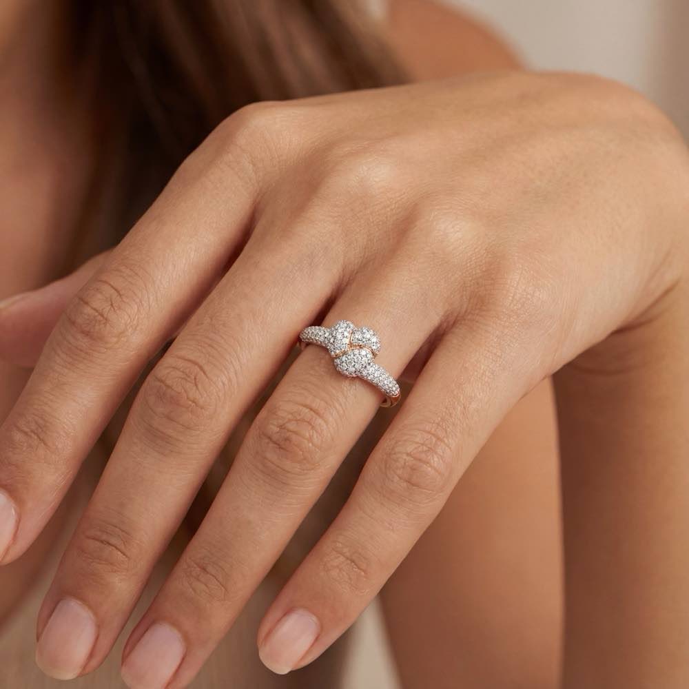Raffinierter Eyecatcher: Ring mit Knotenmotiv mit weißen Brillanten, gearbeitet in Roségold 750/-.