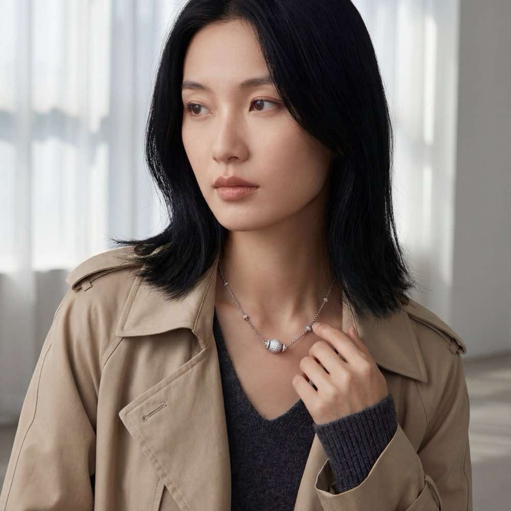 Die Schmuckstücke der Kollektion Bowl sind eine Hommage an die traditionelle Goldschmiede- und Juwelenfasserkunst, die im Atelier STOESS bis heute gelebt wird. Dieses Stück hat eine mit Brillanten vollständig ausgefasste Kugel, dem sogenannten Brillant-Pavé. Der Begriff „Pavé“ stammt aus dem Französischen und lässt sich mit „Pflasterstein“ übersetzen. Tatsächlich erinnert das Brillant-Pavé an eine schillernde Straße, die mit Diamanten gepflastert wurde, denn alle Brillanten der Kugel sind so nah beieinander gefasst, dass von der Fassung nahezu nichts mehr zu sehen ist.