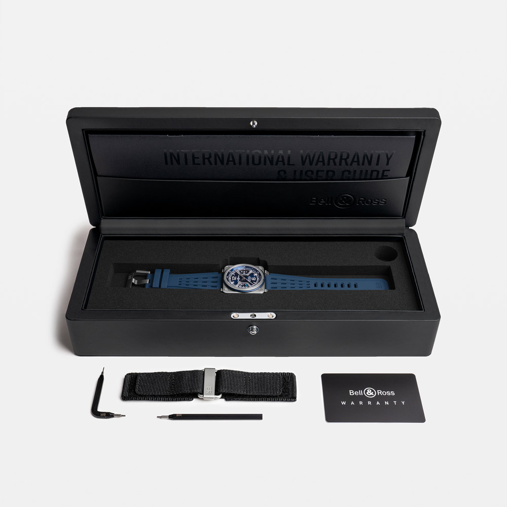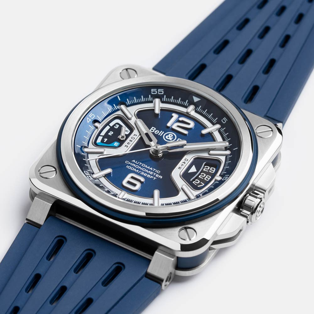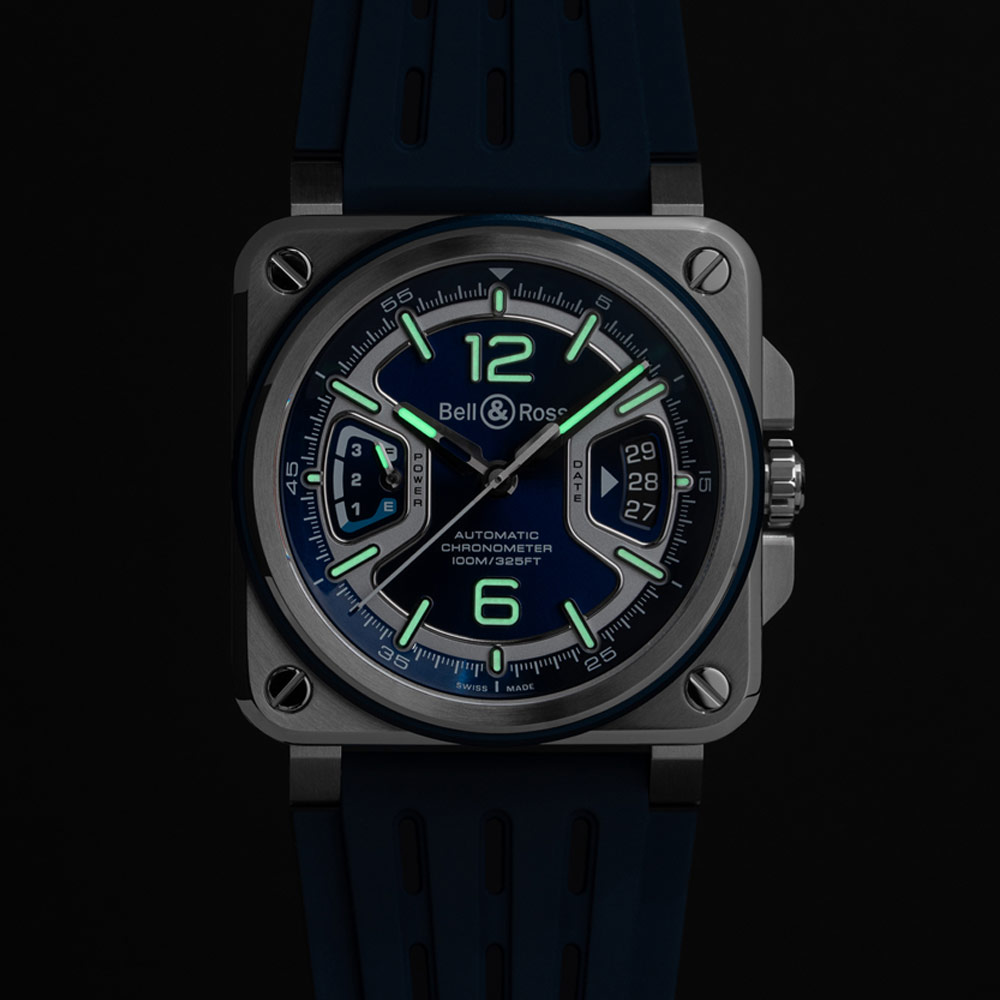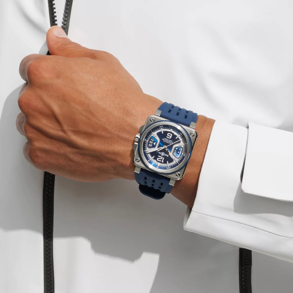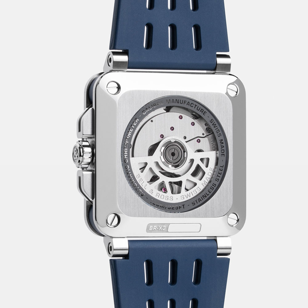 Innovative BR-X3 Blue Steel mit 41 mm Gehäuse  verbindet avantgardistisches Design mit Hightech-Materialien wie Titan, exklusivem Automatikwerk BR-CAL.323 mit 70 Stunden Gangreserve (zertifiziert von der COSC) und charakteristischem X-förmigem Zifferblatt für markante Ästhetik, inspiriert aus der Luftfahrt.