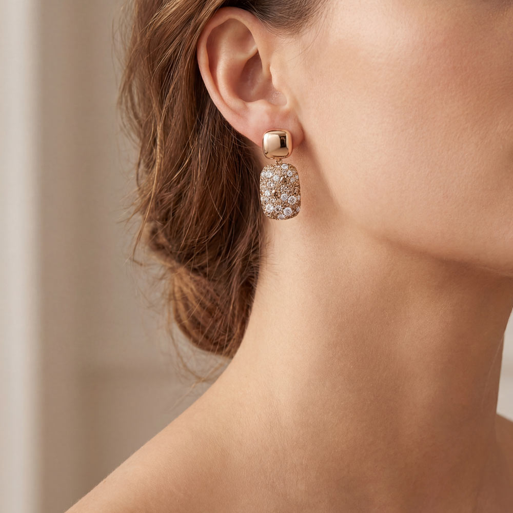 Charmante Ohrringe mit weißen und braunen Diamanten verschiedener Nuancen von nahezu 5 Karat Gesamtgewicht. Gearbeitet in feiner Handarbeit aus 18-karätigem Roségold.