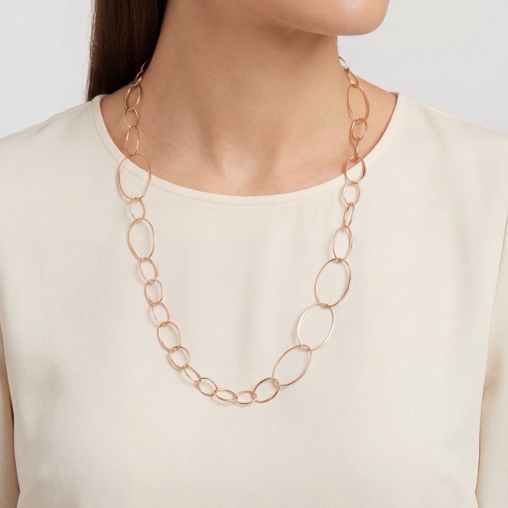 Diese Halskette aus der ikonischen Catene-Kollektion verführt mit ihrer schlichten, aber kraftvollen Ausstrahlung. Gefertigt aus edlem 18-karätigem Roségold und mit einer großzügigen Länge von 110 cm, eröffnet sie Ihnen grenzenlose Möglichkeiten für stilvolle Kombinationen. Ob solo getragen, als Y-Kette oder kunstvoll geschichtet – sie ist mehr als ein Schmuckstück: eine Quelle der Inspiration für Ihren ganz persönlichen Look.