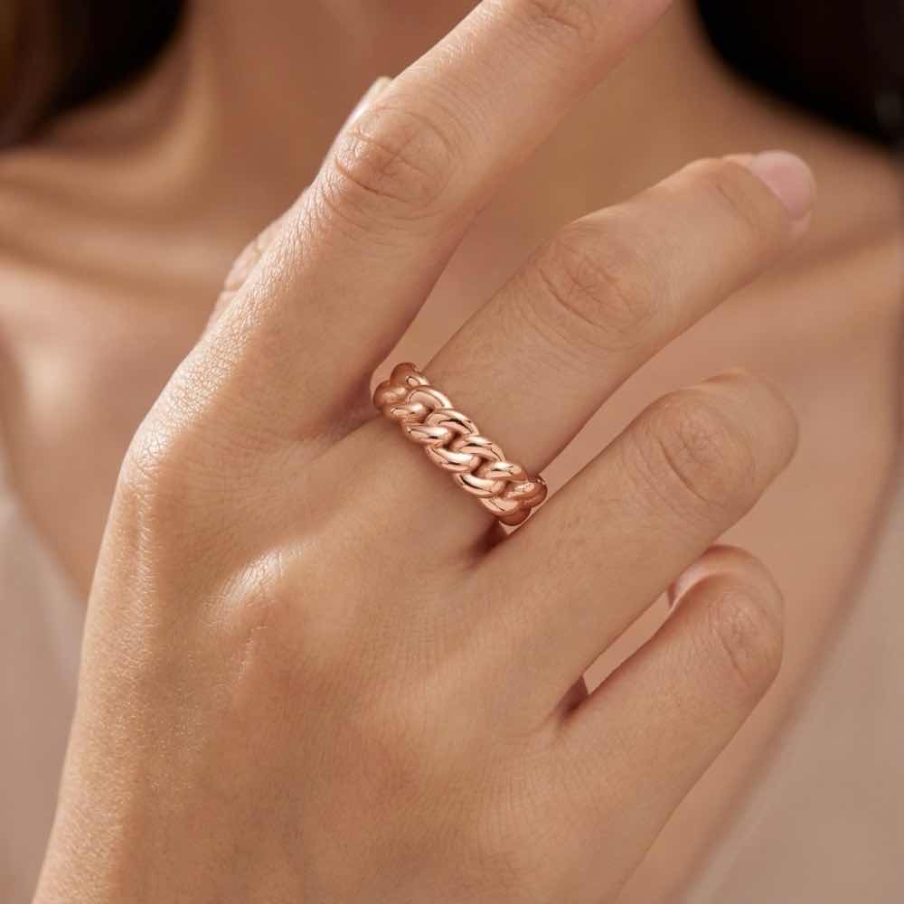 Statement in Roségold: Der Bron-Ring mit markantem Kettendesign vereint zeitlose Eleganz und modernen Chic. Perfekt für alle, die Stil und Individualität lieben!