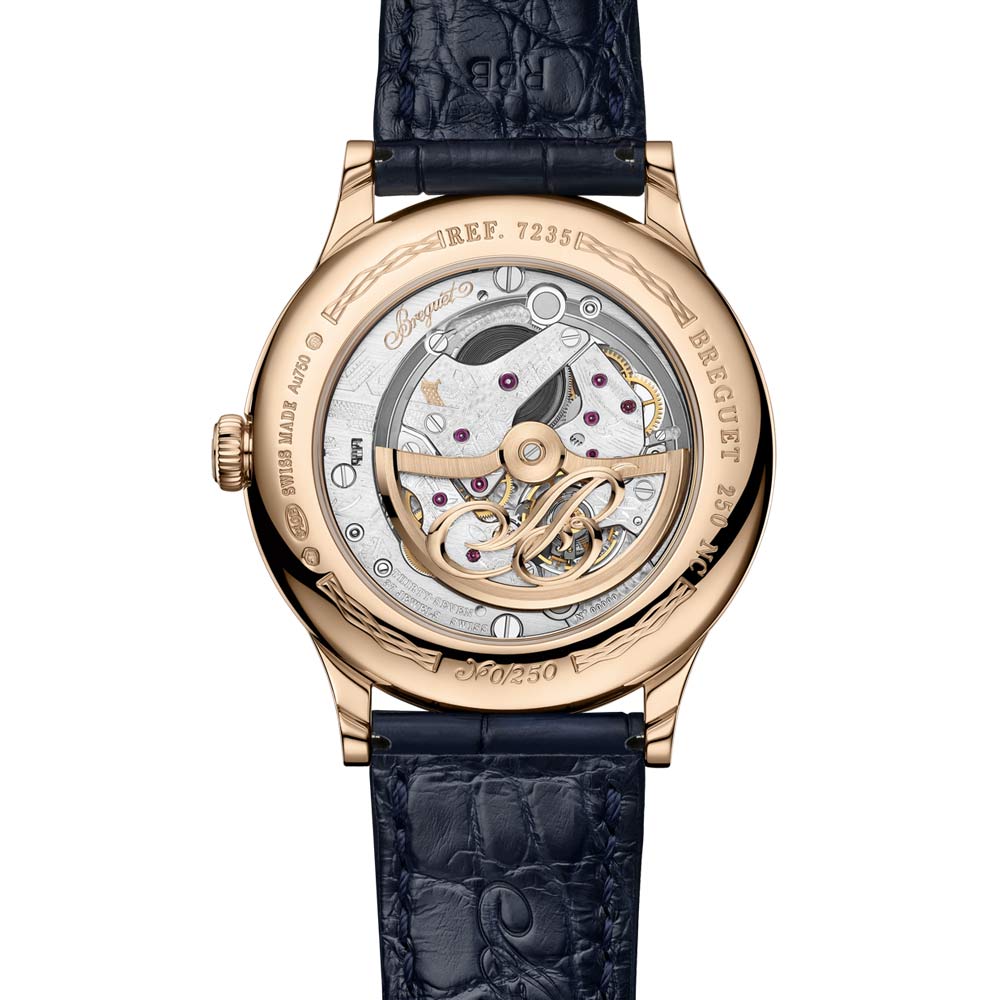 Die Breguet Classique Phase de Lune vereint höchste Uhrmacherkunst mit zeitloser Eleganz. haueigenes Breguet-Manufakturkaliber 502.3DRL mit automatischem Selbstaufzug und 45 Std. Gangreserve. Mondphasenanzeige & kleine Sekunde. 18 Karat Roségold, Champagner-Zifferblatt, Saphirglasboden. 39 mm Durchmesser. Blaues Alligatorlederarmband. Limitiert auf weltweit 250 Exemplare. Ein Meisterwerk für Kenner.