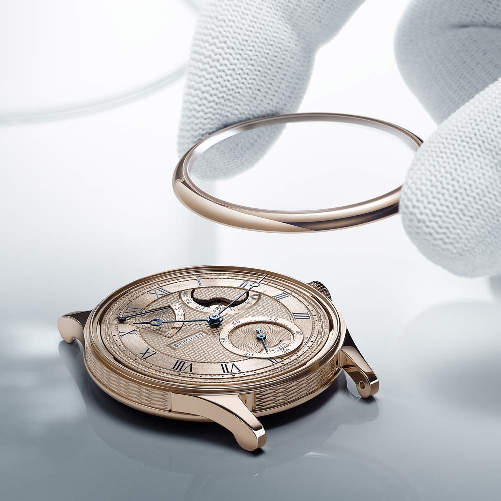 Farbe: handguillochiertes Zifferblatt aus 18 Karat Breguet-Gold mit Dekor „Quai de l’Horloge“