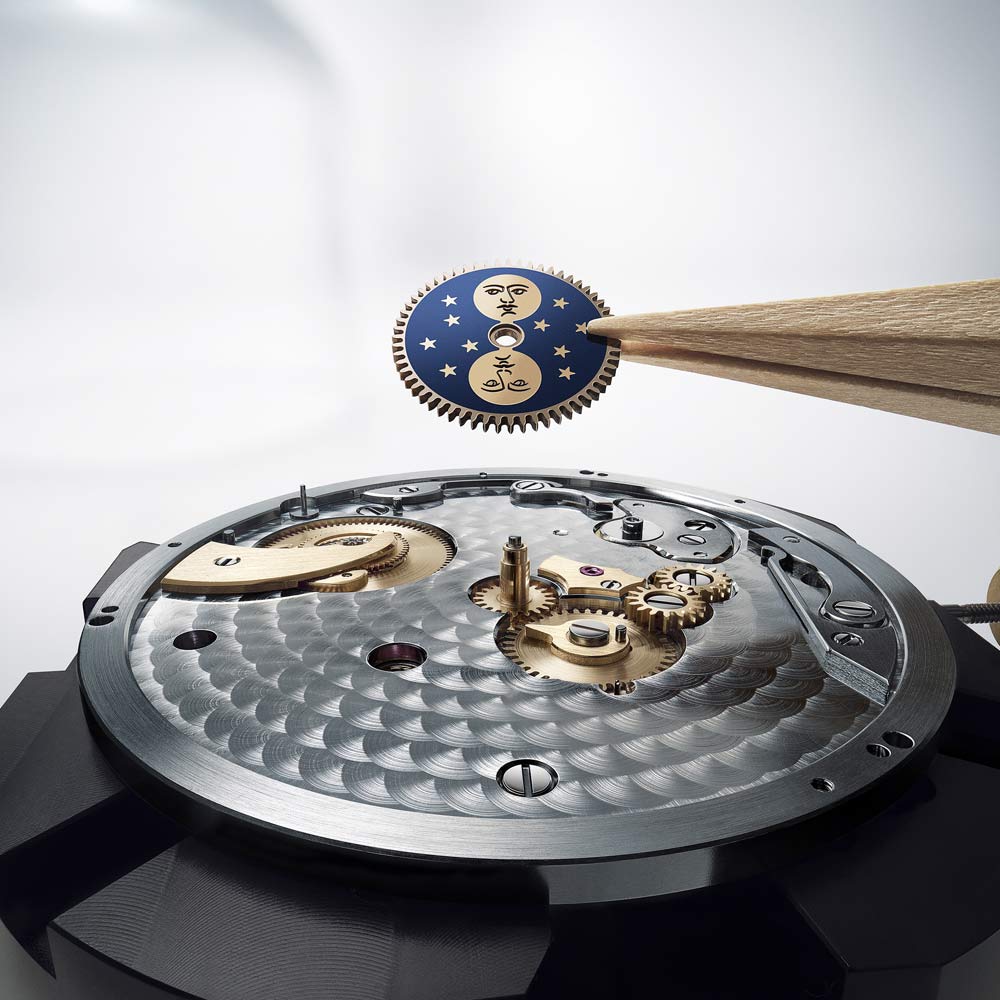 Durch den Saphirglasboden offenbart sich die Seele dieser Uhr: ein kunstvoll dekoriertes Werk, geschaffen von Händen, die Zeit nicht nur messen, sondern ihr Schönheit verleihen.