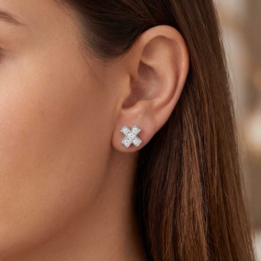 Die Schmuckstücke der Kollektion Colour Drops stehen für Lebensfreude, Genuss sowie Savoir-vivre und bilden zusammen ein charmantes Ensemble. Den Ohrschmuck ziert ein charmantes Kreuz aus weißen Diamanten.