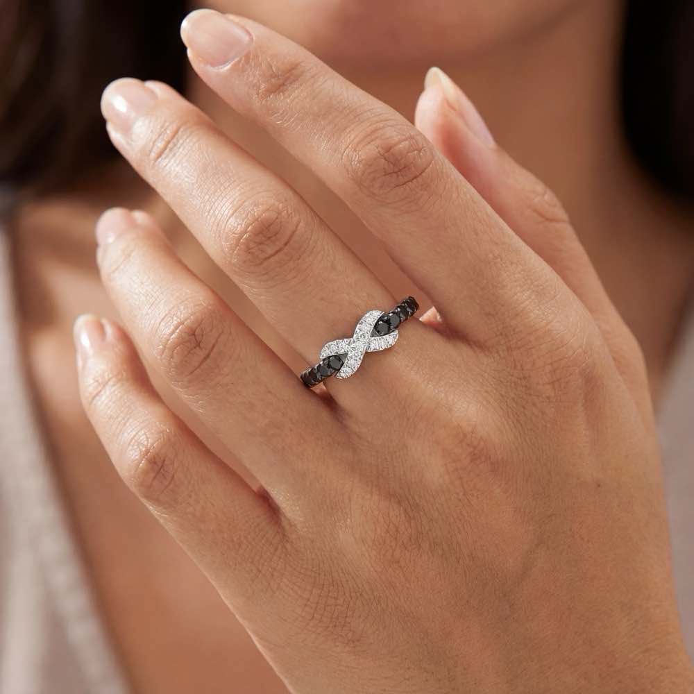 Moderner und lässiger Ring mit schwarzen und weißen Diamanten. In feiner Handarbeit aus Weißgold 750/- gearbeitet.