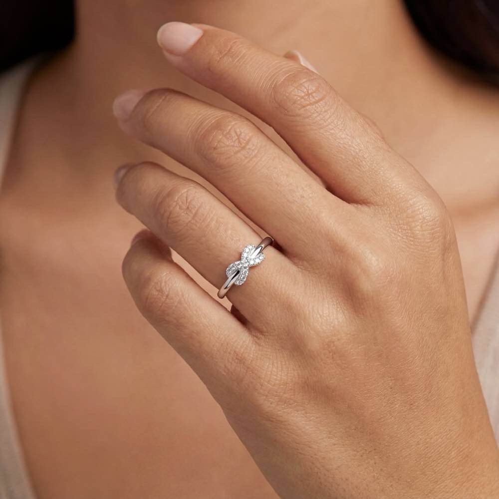 Lässiger Ring mit dem besonderen Etwas. Besetzt mit weißen Diamanten. In feiner Handarbeit aus Weißgold 750/- gefertigt.
