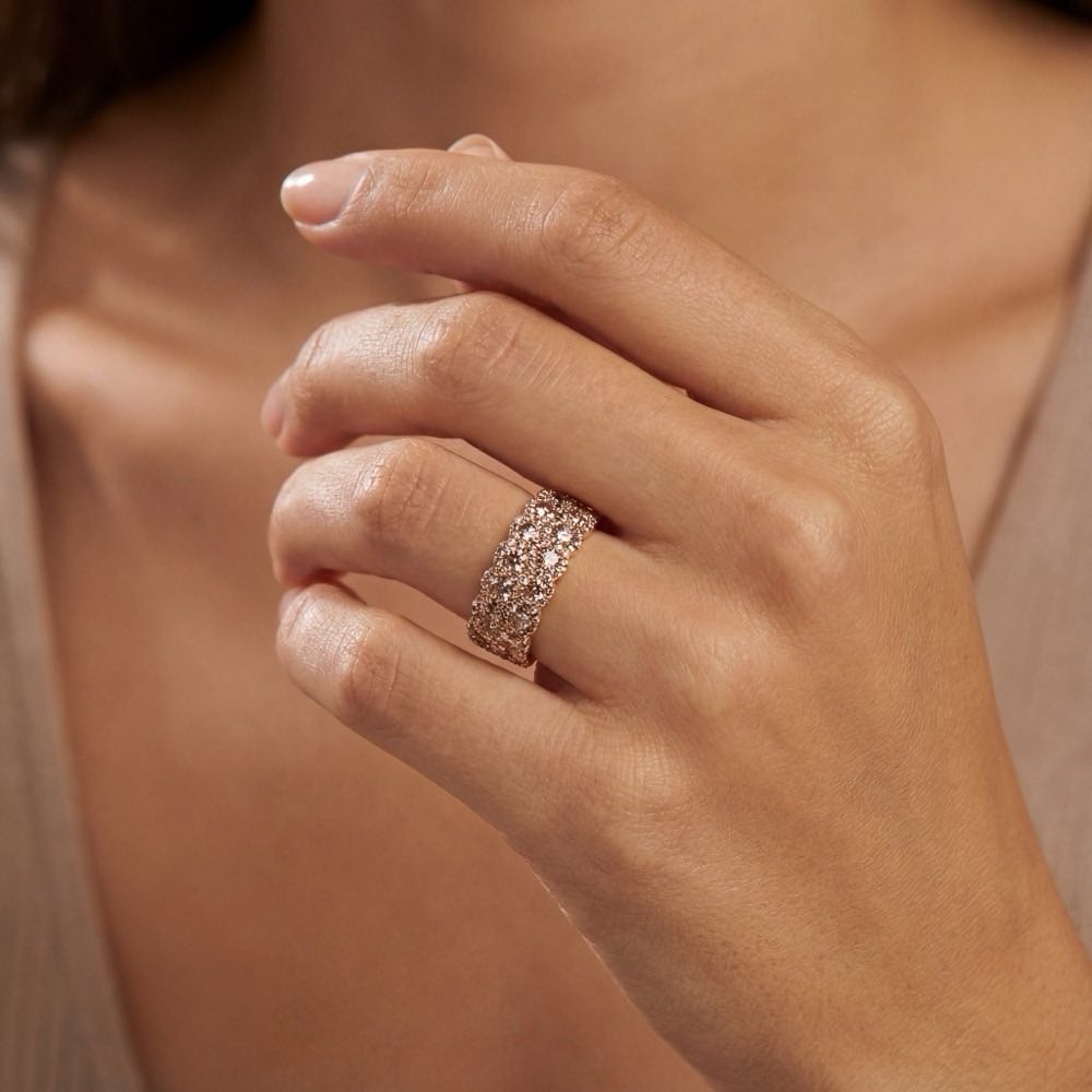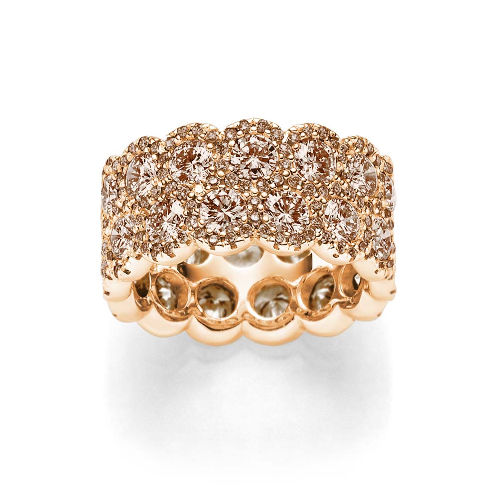 Exklusiver Ring mit charmant zimtfarbenen Diamanten im runden Brillantschliff. Bezaubernd in Glanz und Ausstrahlung zeigt sich dieser in feiner Handarbeit formvollendete Ring aus edlem Roségold 750/-.