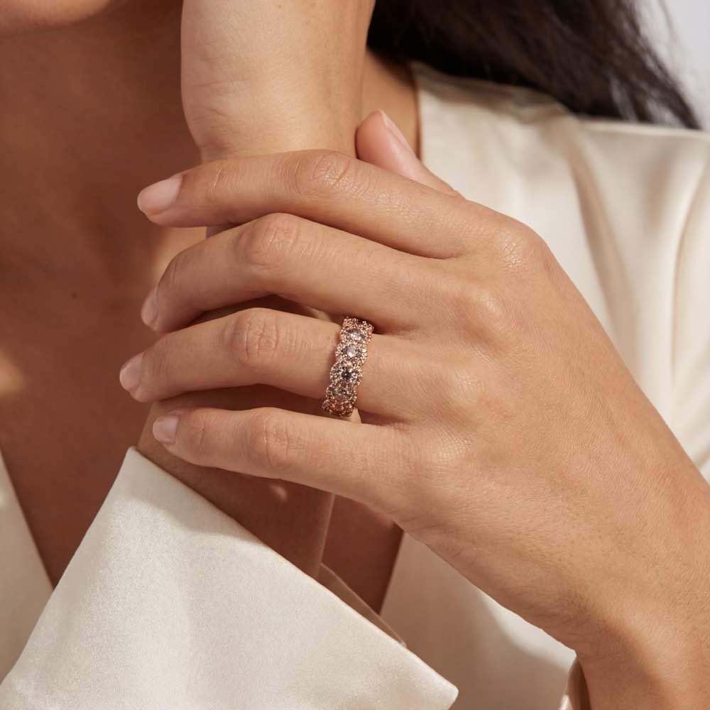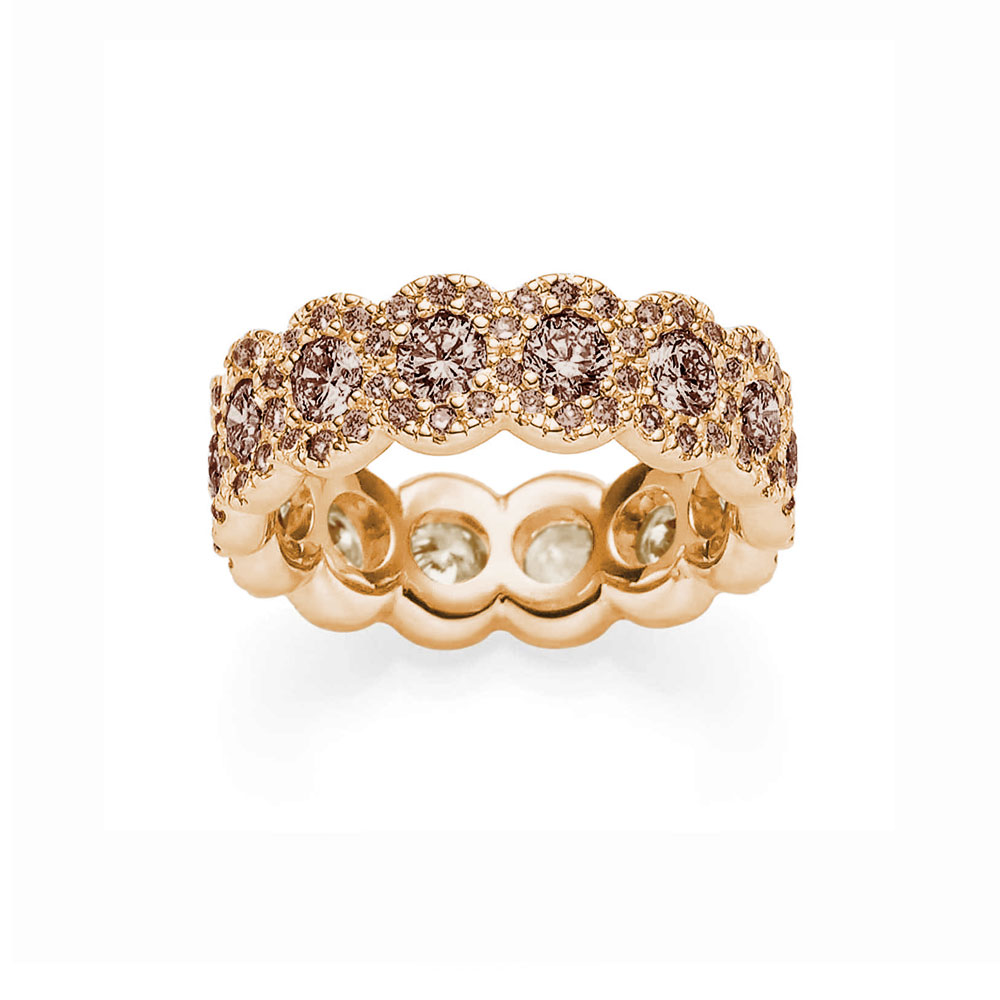 Exklusiver Ring mit charmant zimtfarbenen Diamanten im runden Brillantschliff. Bezaubernd in Glanz und Ausstrahlung zeigt sich dieser in feiner Handarbeit formvollendete Ring aus edlem Roségold 750/-.