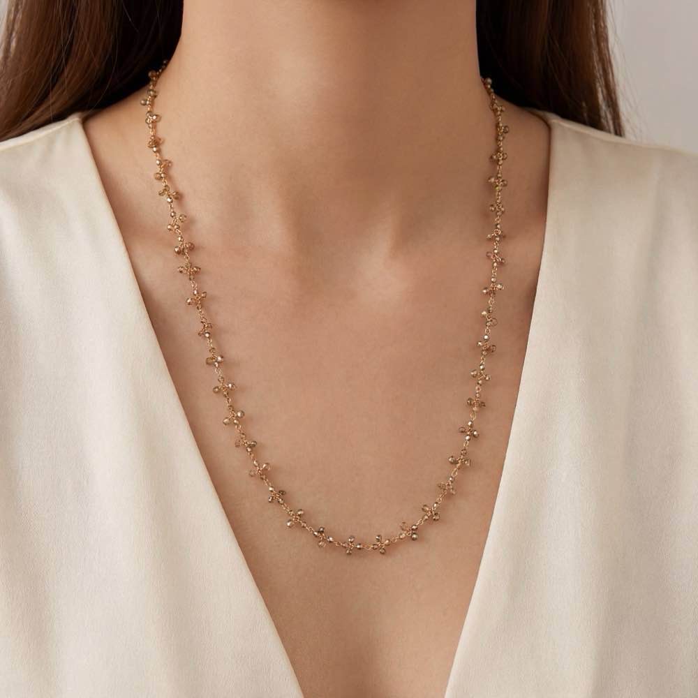 Ein stilvolles Collier in 40 cm Länge mit unzähligen, zimtfarbenen Brillanten. Dieses außergewöhnliche Collier veredelt charmant Ihre Garderobe und ist ein Begleiter für jeden Tag. Gefertigt in warmem Roségold 750/-.