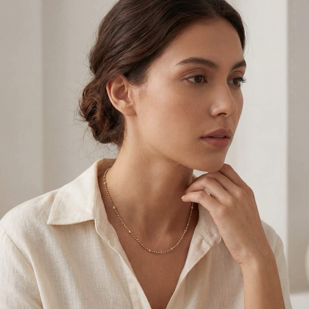 Ein stilvolles Collier in 42 cm Länge mit unzähligen, zimtfarbenen Brillanten. Dieses außergewöhnliche Collier veredelt charmant Ihre Garderobe und ist ein Begleiter für jeden Tag. Gefertigt in warmem Roségold 750/-.
