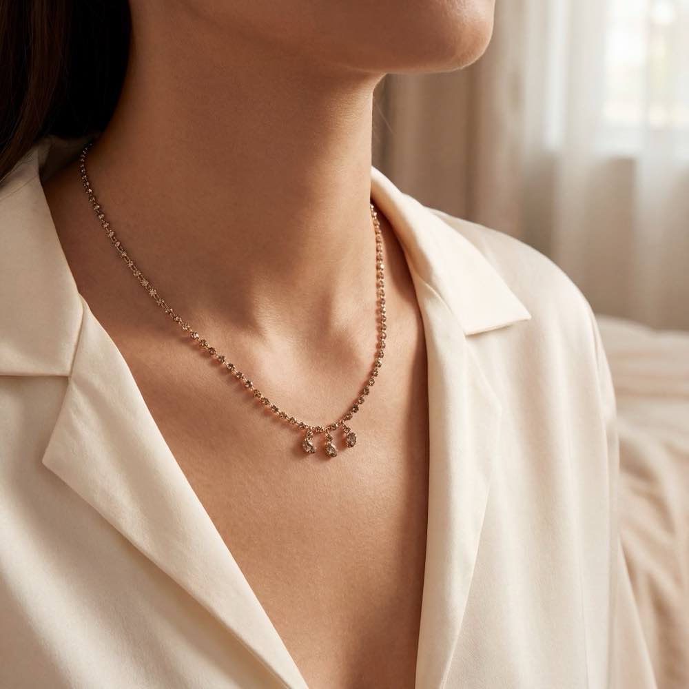 Ein stilvolles Collier in 42 cm Länge mit unzähligen, zimtfarbenen Brillanten. Dieses außergewöhnliche Collier veredelt charmant Ihre Garderobe und ist ein Begleiter für jeden Tag. Gefertigt in warmem Roségold 750/-.