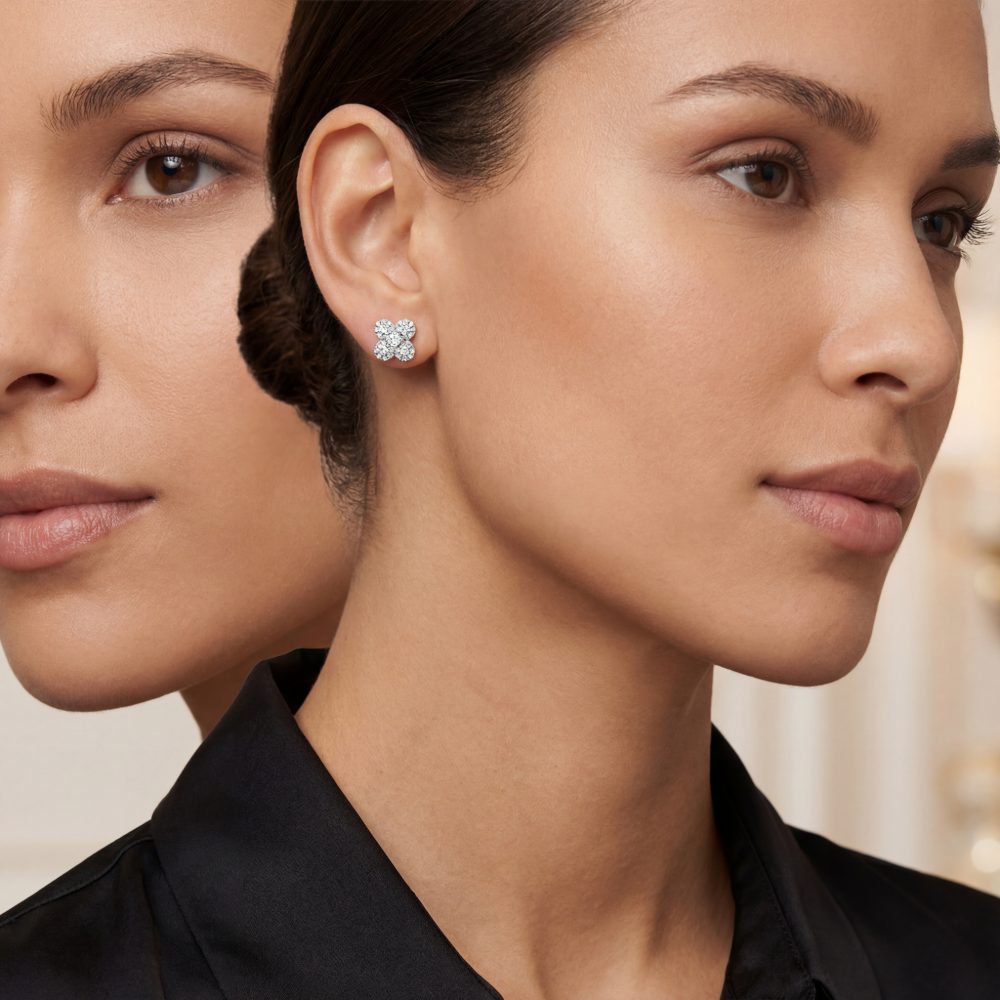 Schicke Ohrstecker mit weißen Diamanten. In feiner Atelier-Handarbeit aus edlem 18-karätigen Weißgold gearbeitet.