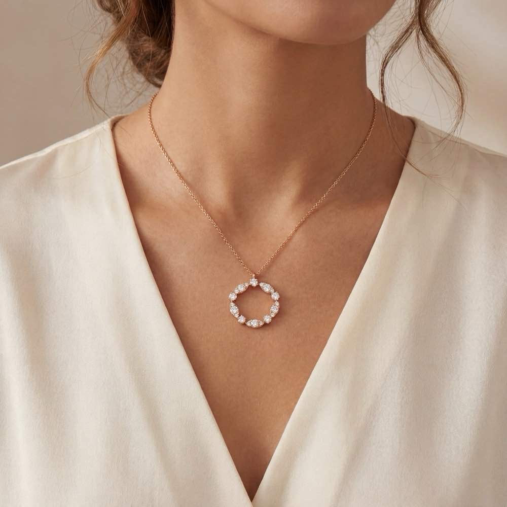 Dieser charmante Halsschmuck aus der Atelier Stoess Kollektion Diamonds 1886 besticht durch seine filligrane Machart mit fein weißen Diamanten, gefasst in edlem Roségold 750/-. Vielseitig tragbar und zugleich edel!