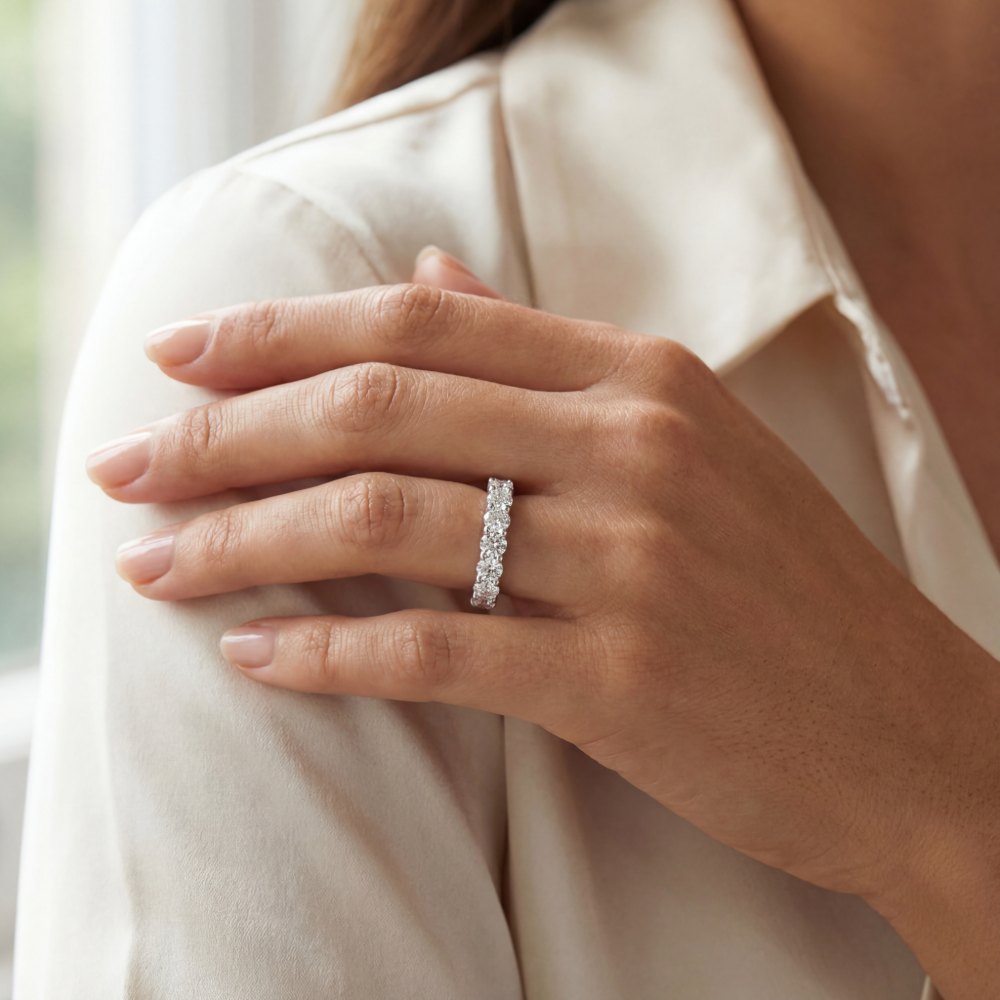 Ein Memoirering zum Verlieben: mit rundum 4 ct. fein weißer Diamanten. In feiner Atelier-Handarbeit aus edlem 18-karätigen Weißgold gearbeitet.