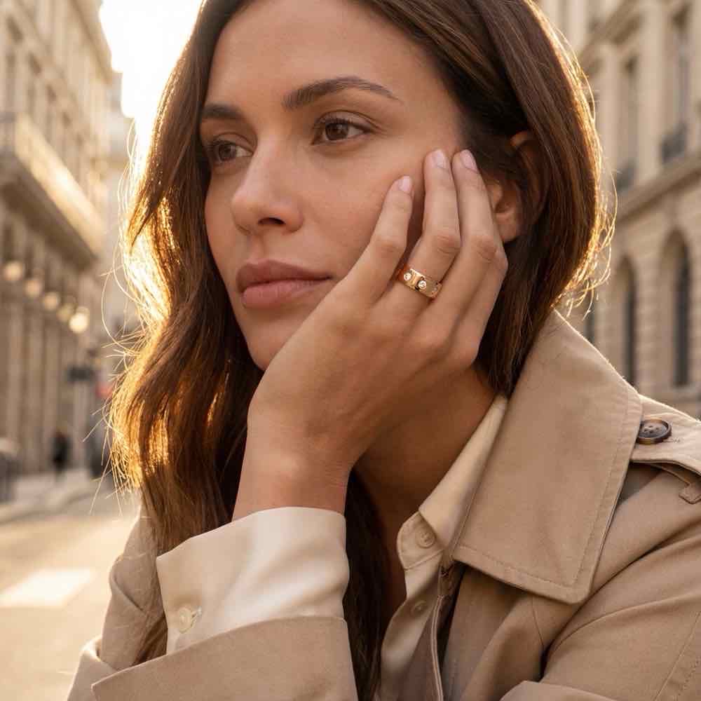 Stilvoller Ring aus 18-karätigem Roségold, geschmückt mit sieben strahlenden Brillanten von insgesamt 0,50 ct. Die feine Abstimmung von edlen Materialien und klarer Linienführung macht dieses Schmuckstück zu einem Ausdruck moderner Eleganz mit klassischer Note.