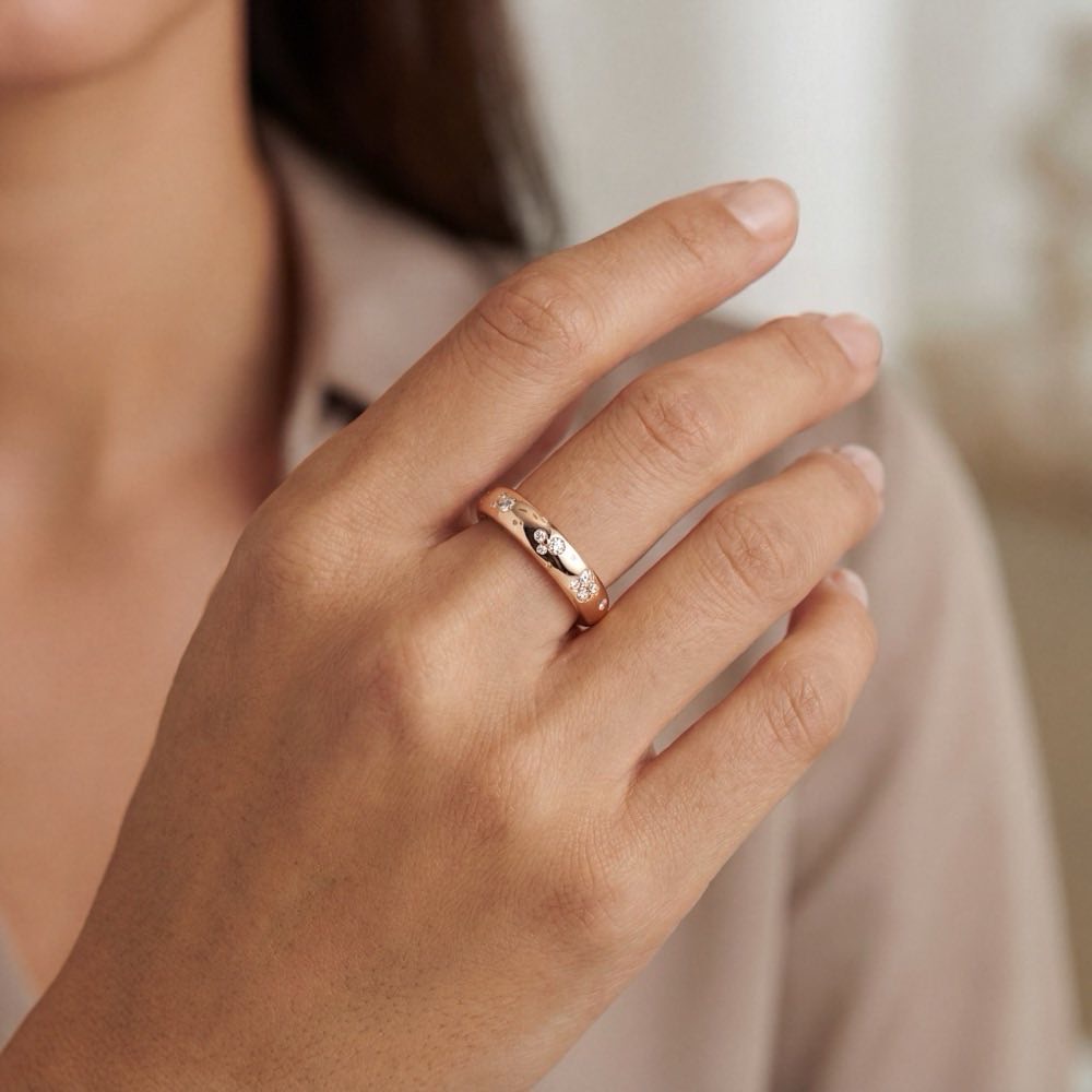 Sportlicher Bandring mit weißen Diamanten. Eine schlichte Fassart mit dem besonderen Twist bringt die strahlenden Brillanten besonders gut hervor. Gearbeitet aus hochwertigem Roségold 750/-.