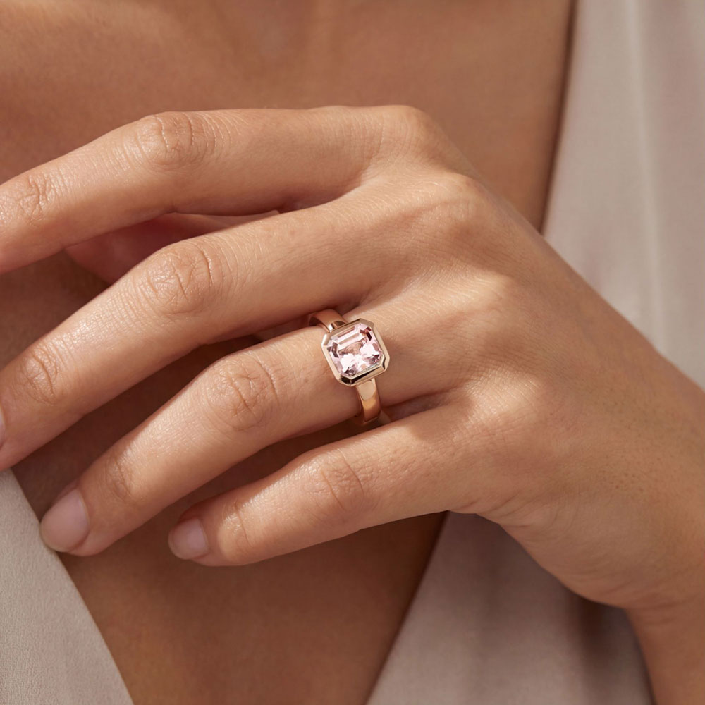 Klassischer Duo Ring mit einem zarten rosafarbenen Morganit. Allein getragen dezent und stilvoll - in Kombination mit dem äußeren Ring ein brillanter Hingucker. Unser Duo Ring: Zwei Ringe, ein Design, unendlich variabel!
