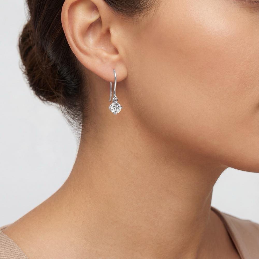 Bezaubernder Ohrschmuck im Pretty Woman-Look mit zwei fein weißen Diamanten im Brillantschliff im Zentrum. Unter dem Mittelstein verläuft dezent und zart ein Kranz aus weiteren weißen Diamanten. In feiner Atelier-Handarbeit aus edlem 18-karätigen Weißgold gearbeitet.