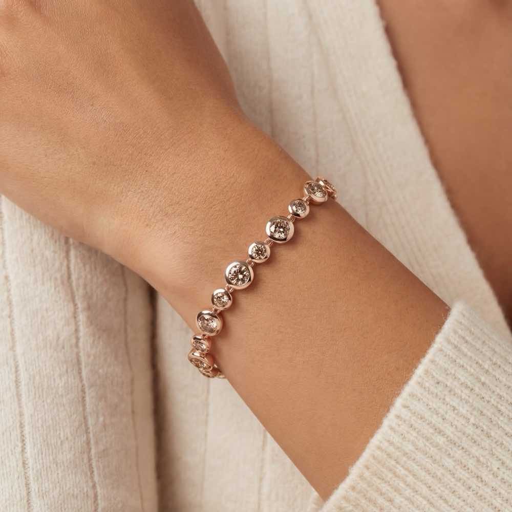 Charismatisches Armband mit braunen Diamanten in wechselnden Größen im runden Brillantschliff. In feiner Handarbeit gefertigt aus edlem Roségold 18 Karat.