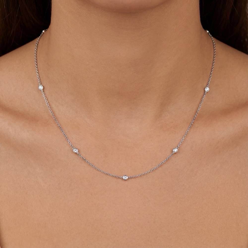 Schlichtes Collier mit weißen Diamanten. Vielseitig kombinierbar und zu jedem Outfit passend. In feiner Atelier-Handarbeit aus edlem 18-karätigen Weißgold gearbeitet.