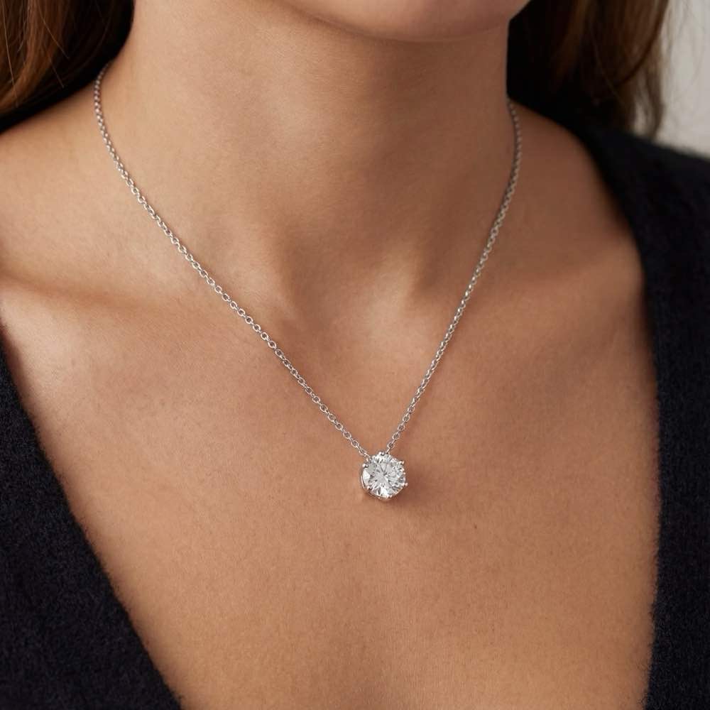 Hochkarätiger Anhänger mit einem fein weißem und lupenreinem Diamanten im Brillantschliff. Dieser edle Halsschmuck wurde in feinster Handarbeit im eigenen Atelier aus hochwertigem Weißgold 750/- gefertigt.