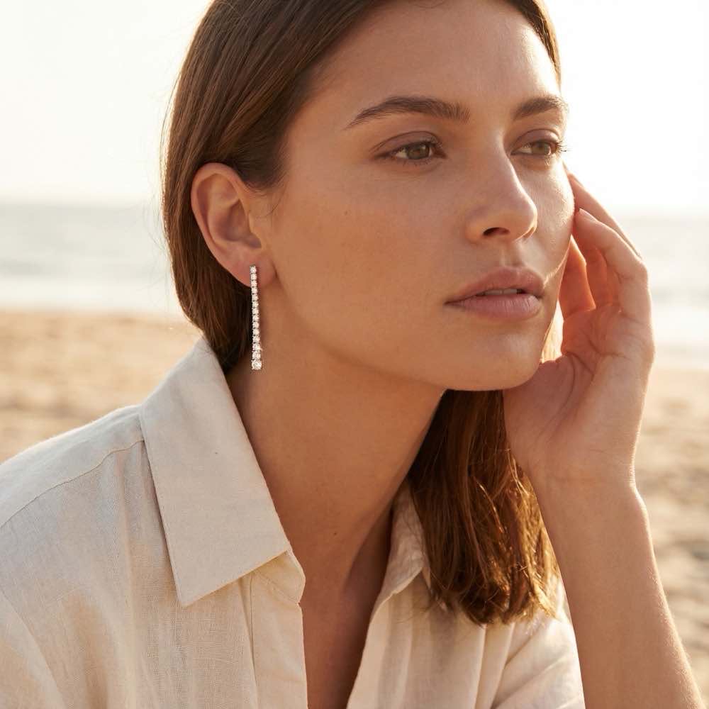 Stilvoller Ohrschmuck mit linear gefassten, weißen Diamanten. In feiner Handarbeit aus Weißgold 750/- gearbeitet.
