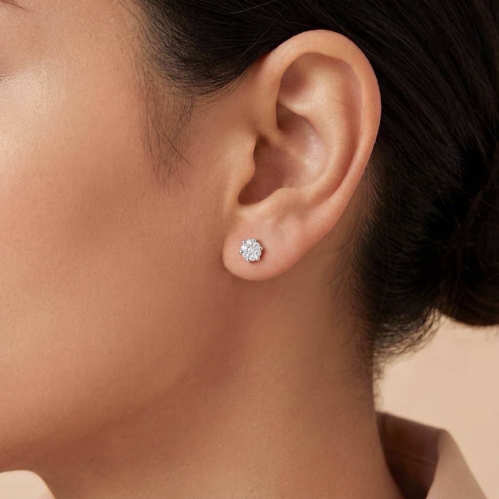 Zeitlose und stilvolle Solitär-Ohrstecker mit weißen Diamanten im "Illusion-Setting". In feiner Handarbeit aus Weißgold 750/- gearbeitet.
