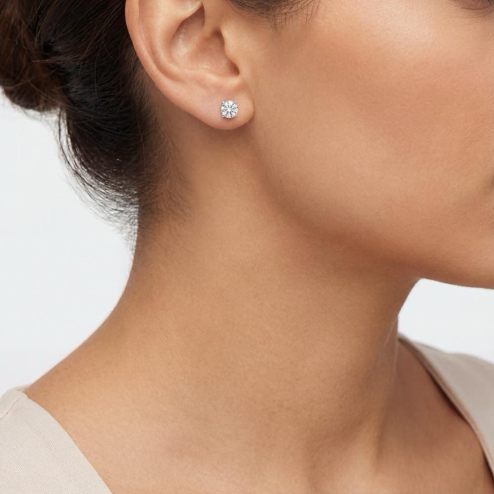 Zeitlose und stilvolle Solitär-Ohrstecker mit zwei hochkarätigen, in vier Krappen gefassten Diamanten. In feiner Handarbeit aus Weißgold 750/- gearbeitet.