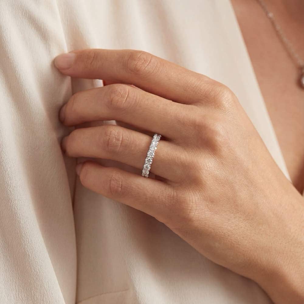 Stilvoller Memoire-Ring mit weißen Diamanten. Ein Klassiker und vielfältig kombinierbar. In feiner Handarbeit aus Weißgold 750/- gearbeitet.
