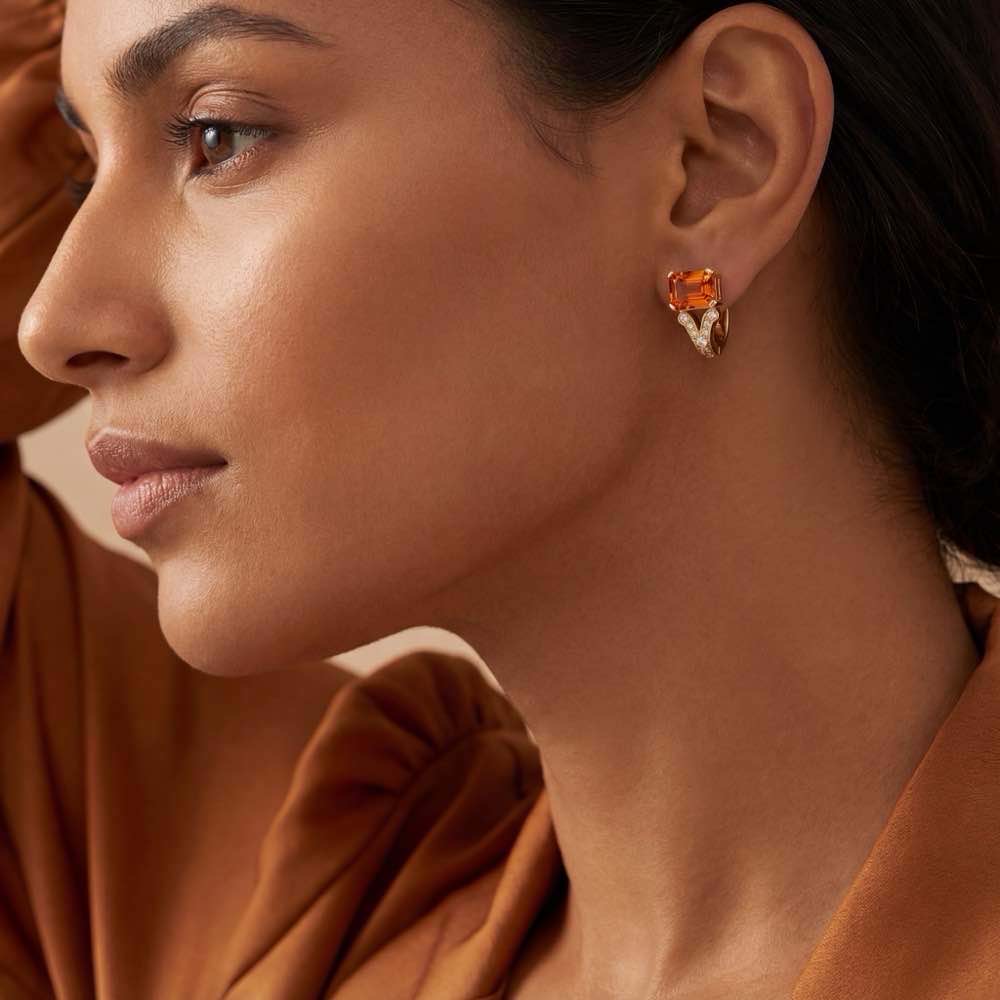 Im Zentrum aller Schmuckstücke der Kollektion Emeraude steht ein ausgesuchter, zeitlos schöner Edelstein im Emerald-Schliff. Als wolle das Schmuckstück den Mittelstein liebevoll umarmen, öffnet es sich charmant mit zwei Voluten in Richtung Fassung. Um das Farbspiel des Mittelsteins wetteifern feine Brillanten in den seitlichen Fassungen.