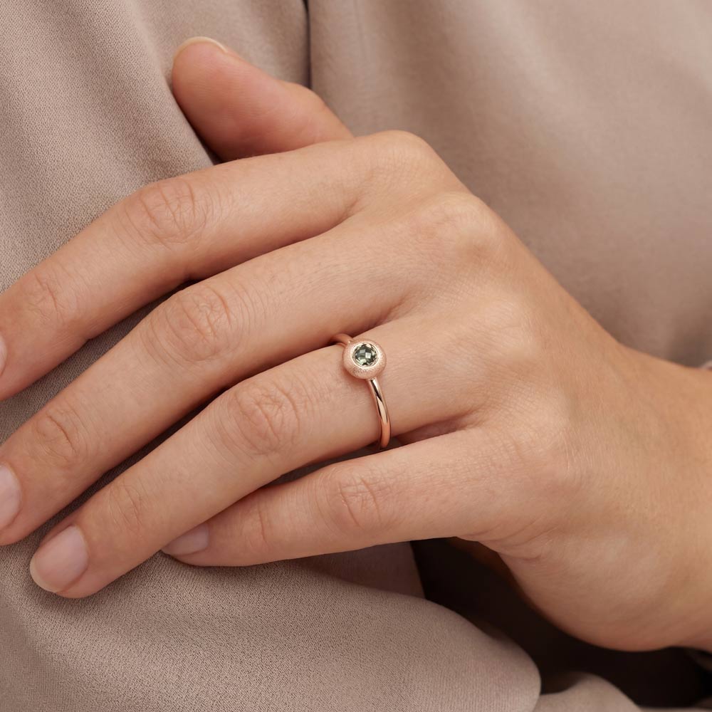 Ausdrucksstarker Full Circle Ring von Bron aus 18‑karätigem Roségold mit grünem Saphir, ideal zum alleinigen Tragen oder für stilvolle Kombinationen.