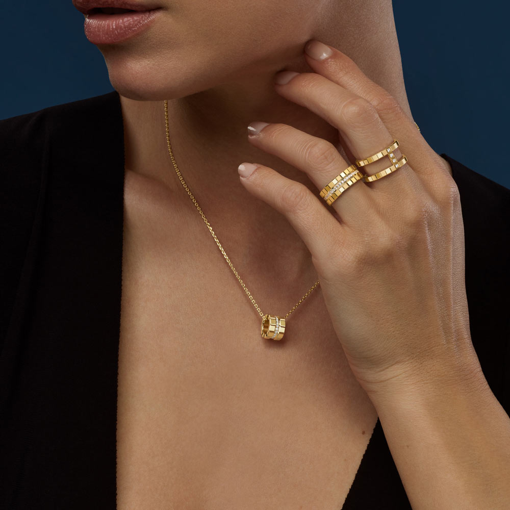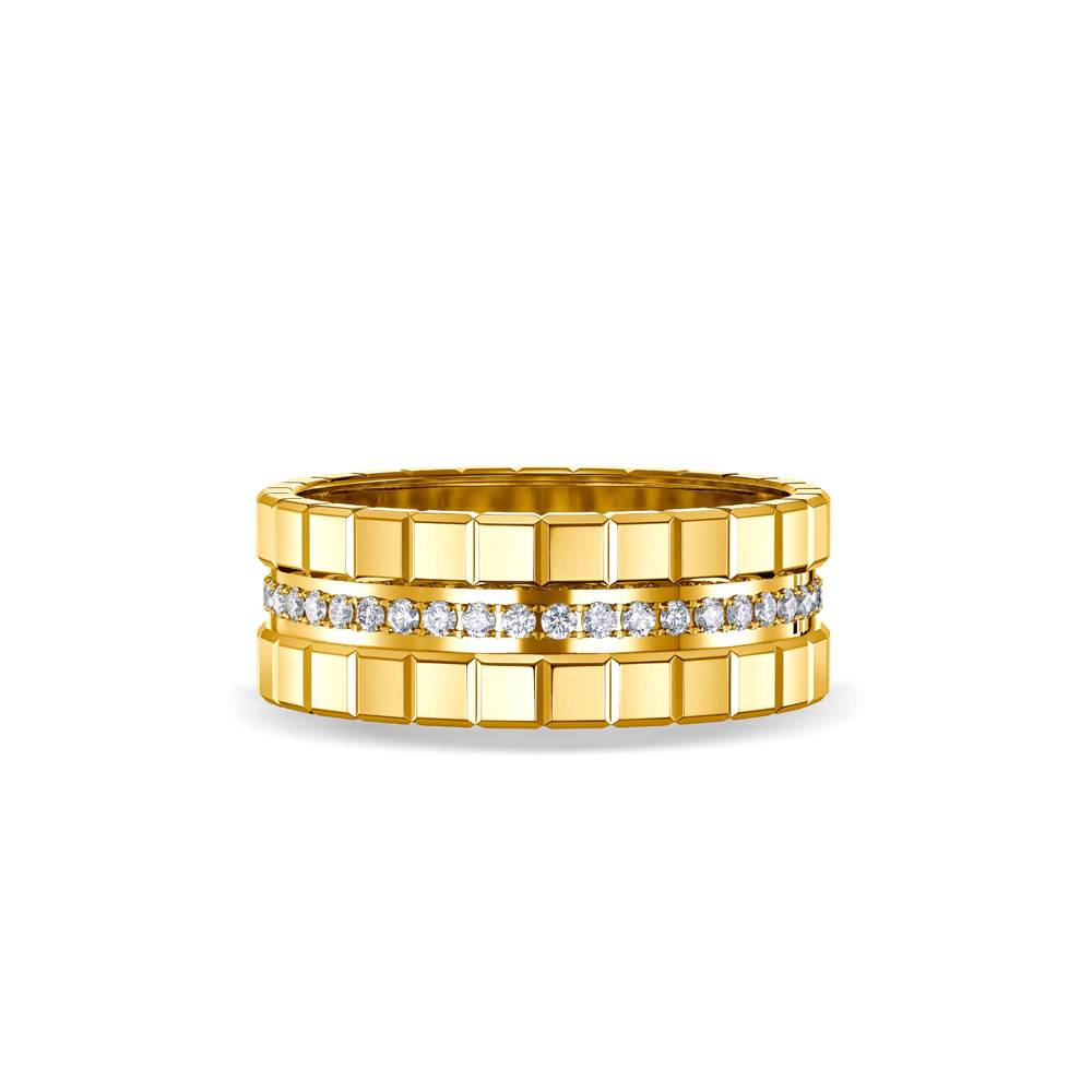 Sportlicher Ring mit perfekt aneinander gereihten Würfeln. Mit der Wahl dieser Würfelform spielt die Ice Cube Kollektion kühn mit ihrer außergewöhnlich klaren Ästhetik und den Myriaden von Lichtreflexen, die von den facettierten Würfelkanten widergespiegelt werden. Minimalistische Eleganz in ihrer schönsten Form. In edlem 18-karätigen Gelbgold gefertigt.