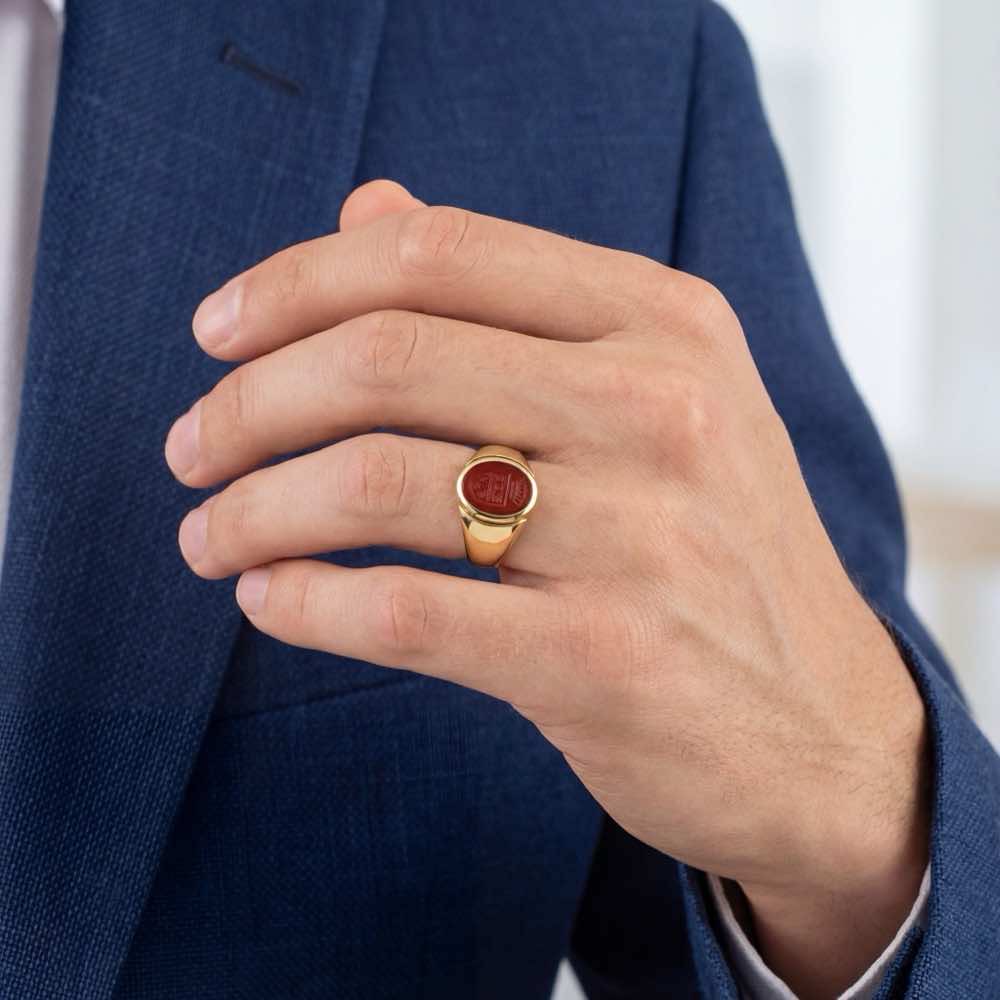 Die Familienwappen und Monogramme werden ausschließlich von Hand graviert, denn traditionelle Handwerkskunst kann nicht durch Maschinen ersetzt werden. Fast alle unsere Siegelringe werden komplett massiv und nur in den hochwertigsten Legierungen gearbeitet.