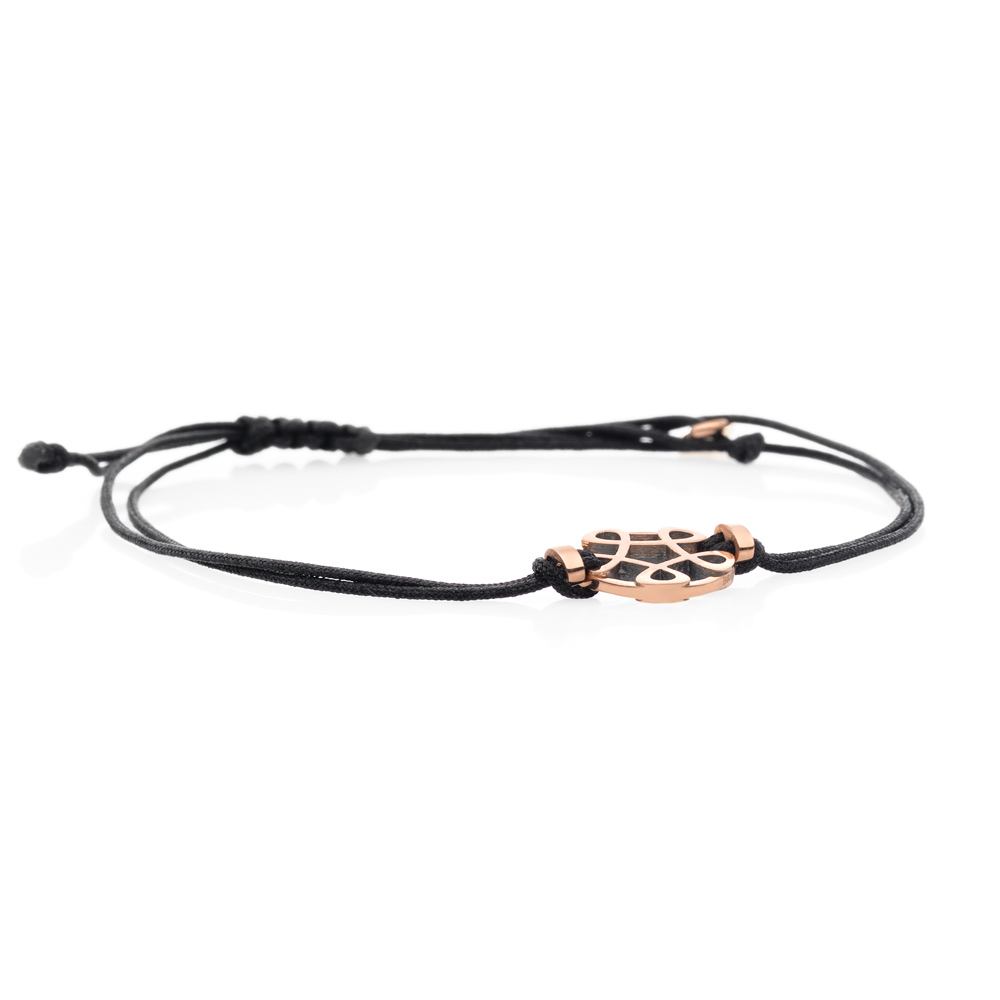 Ein junges, sportliches Armband der Kollektion Toujours Ajour. In vielen Kordelfarben erhältlich. Gefertigt aus Roségold 18 Karat.