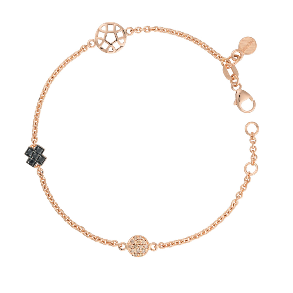 Ein junges, sportliches Armband der Kollektion Joy mit weißen und schwarzen Diamanten. Gefertigt aus Roségold 18 Karat.