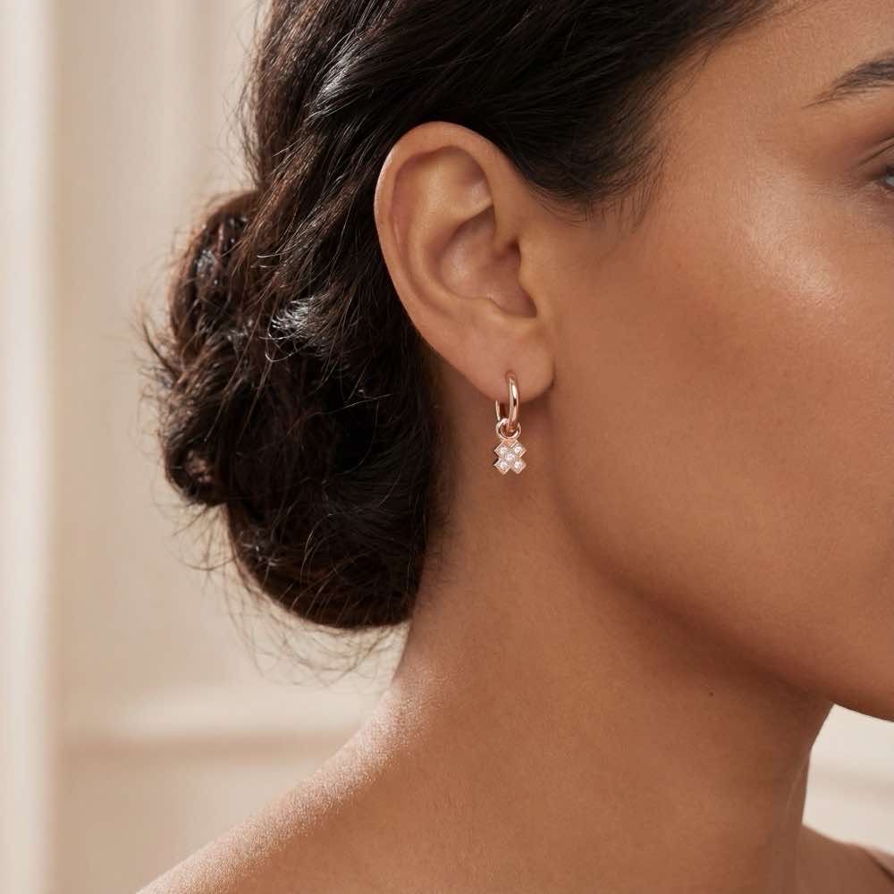Für ein sportliches Outfit: schicke Einhänger mit weißen und schwarzen Diamanten zum Einhängen in die "Lux"-Creolen. Die "Lux"-Creolen (siehe unten) müssen separat erworben werden.