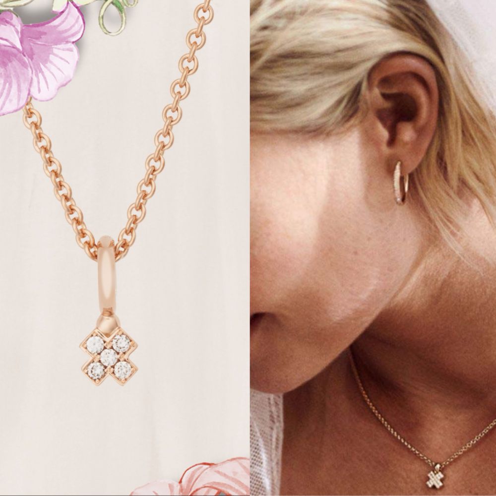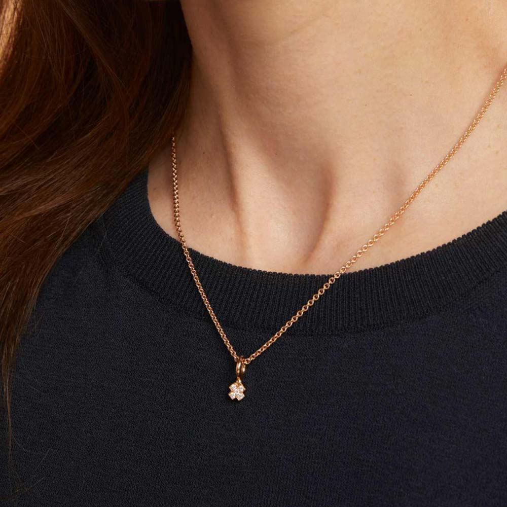 Mit weißen Diamanten besetzter Küsschen Anhänger für dezenten Halsschmuck. Schlicht und dennoch markant. Passende Ketten sehen Sie weiter unten auf dieser Seite.