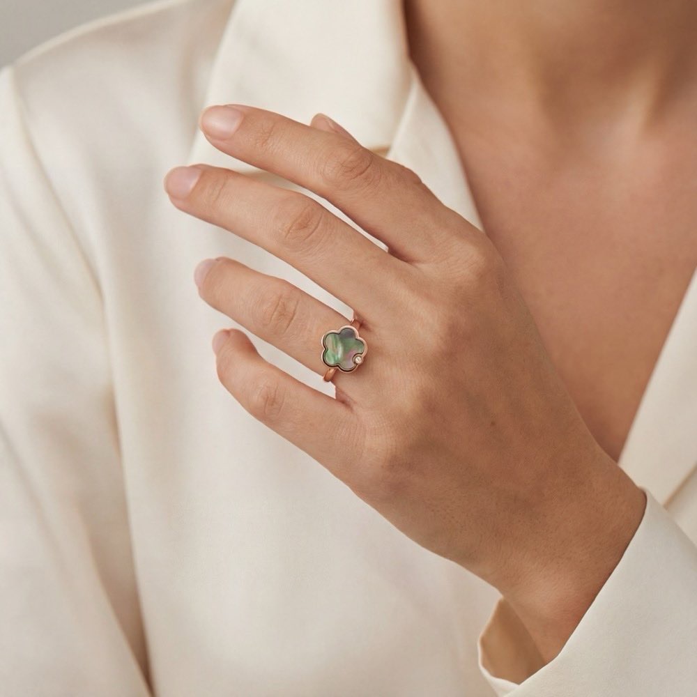 Nonchalance, Esprit und Eleganz: die Kollektion Little Flower verführt durch ihre Natürlichkeit und beschwingte Formensprache. Die sanft in Braun, Grün und Purpur schimmernden Perlmuttflächen unterstreichen den natürlichen Charme und die Leichtigkeit der Schmuckstücke. Die fünfblättrigen Blüten sind entweder mit Brillanten, in Perlmutt oder ganz schlicht in Roségold gearbeitet. Lassen Sie sich inspirieren von den verspielten Schmuckstücken Little Flower. Sie werden verzaubert sein – versprochen!