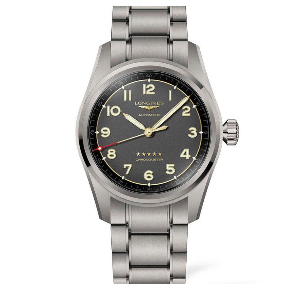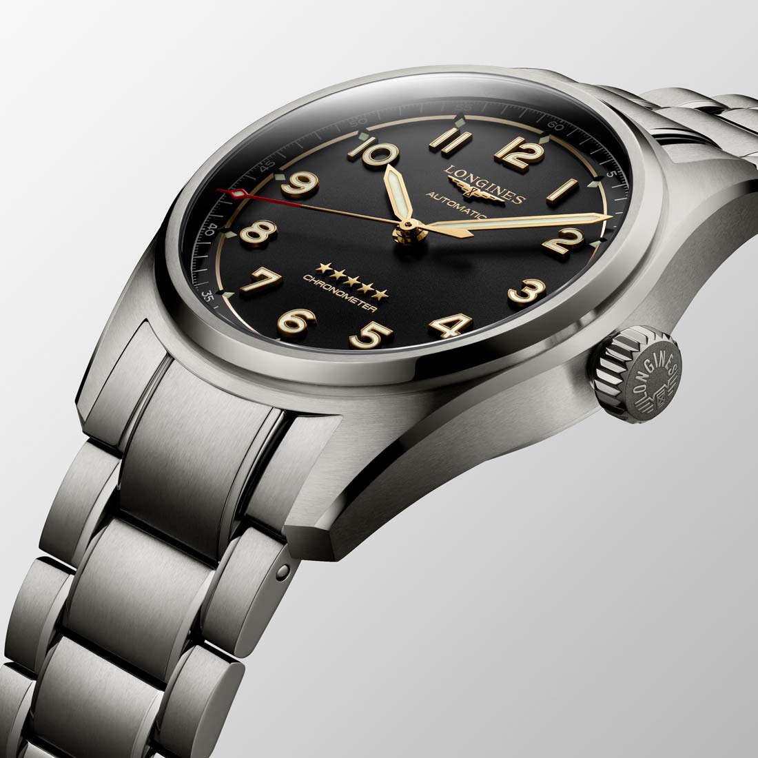 Longines Spirit in 40 Millimeter Durchmesser, Gehäuse und Armband aus Titan, Doppelfaltschließe, Zifferblatt anthrazit. Kratzfestes Saphirglas mit mehreren Antireflexschichten, mechanisches Uhrwerk mit Automatikaufzug. COSC-zertifizierter Chronometer. 100 Meter wasserdicht.