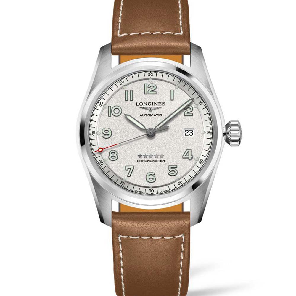 Longines Spirit in 40 Millimeter Durchmesser, Zifferblatt silber. Kratzfestes Saphirglas mit mehreren Antireflexschichten, mechanisches Uhrwerk mit Automatikaufzug. COSC-zertifizierter Chronometer. Lederarmband und Gehäuse in Edelstahl.