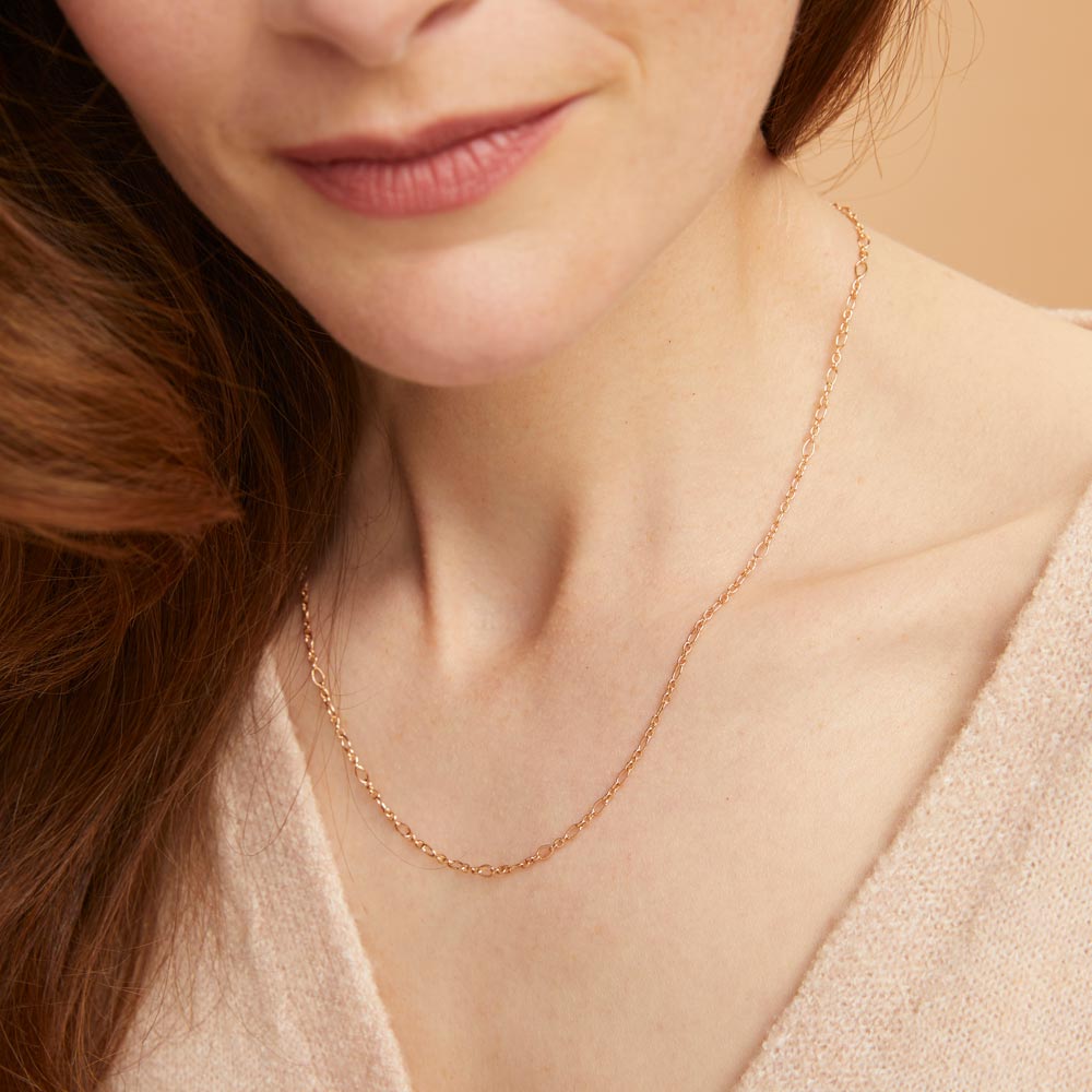 Raffinierte wie schlichte Collierkette in 55 cm Länge.  Gefertigt aus warmem Roségold 18 Karat.
