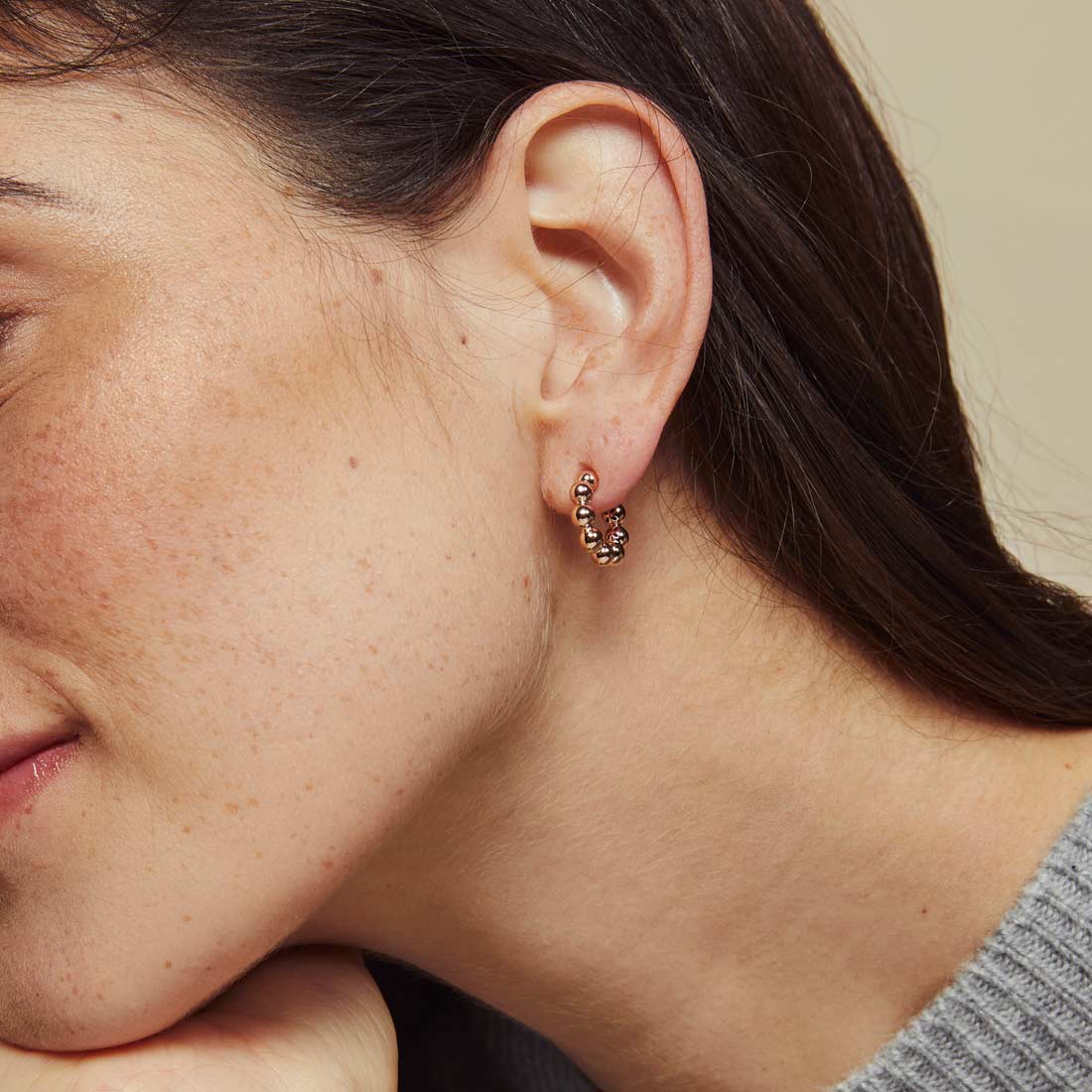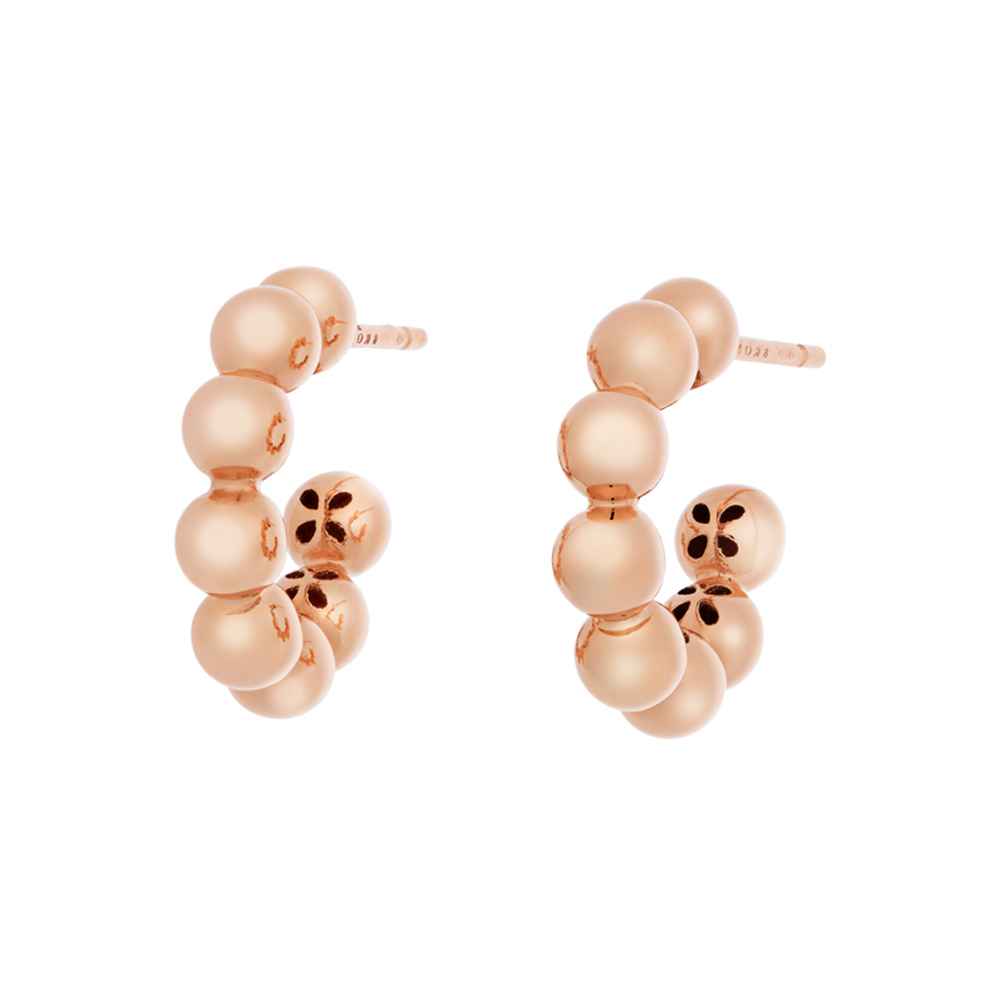 Schlichte und zeitlose Creolen in formvollendetem Design. Kombinierbar mit verschiedenen Looks und Anlässen. Gefertigt aus warmen Roségold 18 Karat.