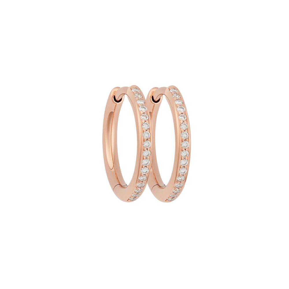 Schlichte und zugleich raffinierten Creolen mit weißen Diamanten für einen besonderen Glanz! Gefertigt aus Roségold 18 Karat.