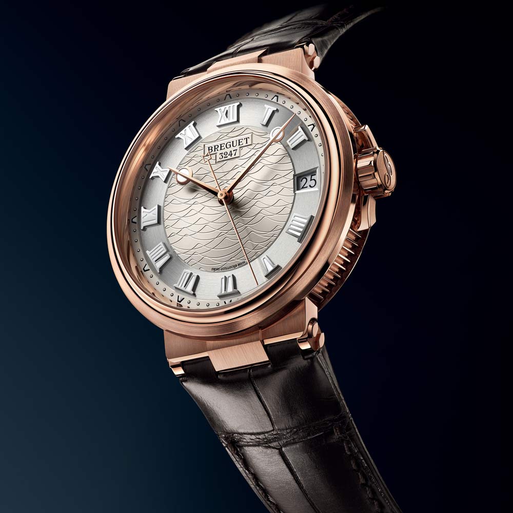 Die maritime Atmosphäre eines Segelturns vor Augen, dabei stets die wogenden Wellen auf dem Zifferblatt der Uhr im Blick, bringen jedem Träger die Erinnerungen an den letzten Urlaub wieder ins Gedächtnis. Die Marine ist eine sportliche Kollektion mit besonderer Klasse, die dem seit 1775 fortwährendem Vermächtnis des legendären Uhrmachers Abraham Louis Breguet folgt. Sie besticht durch eine Vielzahl kleiner und liebevoller Details und macht sie zu einem Erlebnis für jeden Uhrenconnaisseur.
