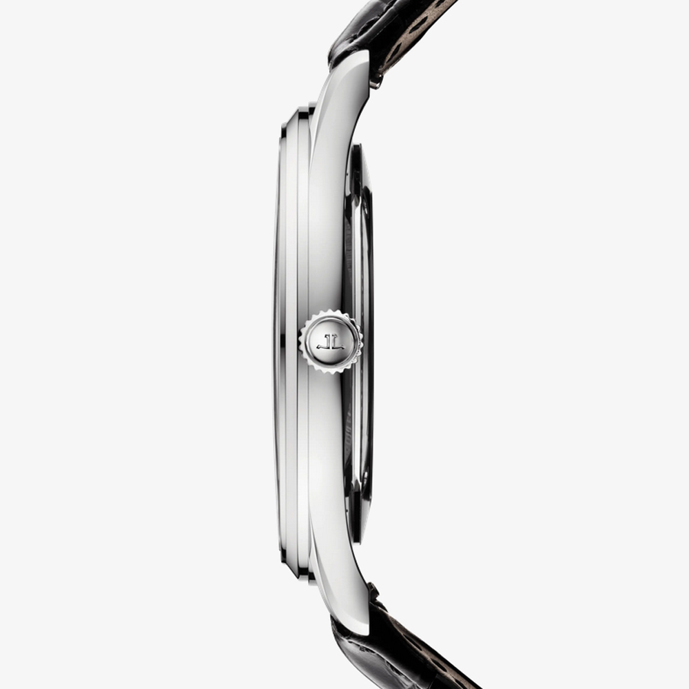 Die Master Ultra Thin Date aus Edelstahl vereint zeitlose Eleganz mit modernem Stil. Subtile Verfeinerungen spiegeln das beständige Streben der Kunsthandwerker von Jaeger-LeCoultre nach Perfektion wider. Das Zifferblatt zieht sofort die Blicke auf sich: Vor einem silbernen Hintergrund mit Sonnenschliff präsentieren sich nun verlängerte, feinere Indizes. Das namensgebende Datum erscheint in einem charakteristischen Fenster bei 6 Uhr.