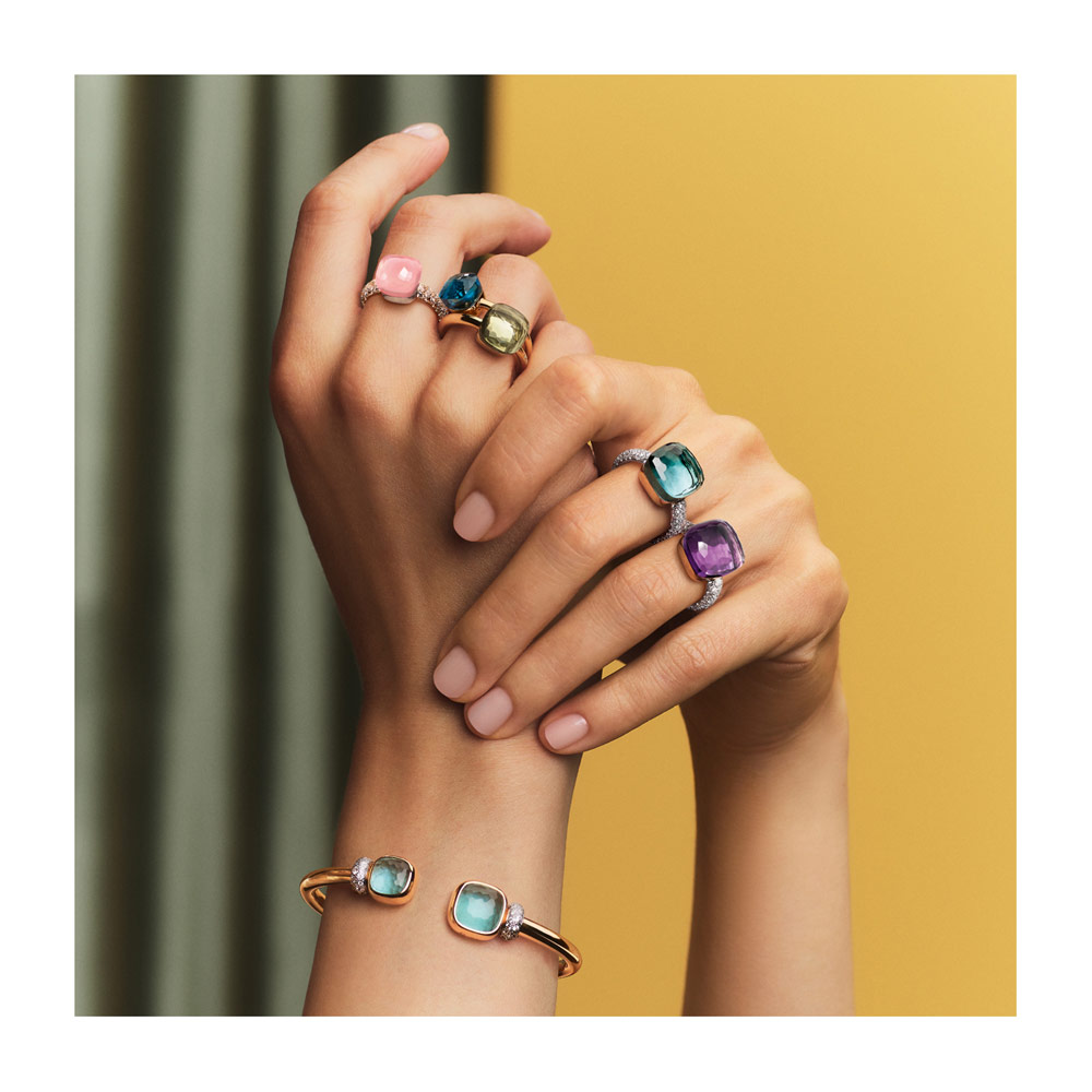 Farbenfrohe Träume mit Nudo! In allen Farben des Regenbogens schimmern die prächtigen Edelsteine von Nudo, die in jeder Facette den fröhlichen Lebenstil von Pomellato in lebendiger Perfektion widerspiegeln. Sie sind miteinander kombinierbar, um einen Look zu kreieren, der so einzigartig ist wie du selbst. Entdecke diese kultigste, einzigartige Kollektion zum Kombinieren und Sammeln.